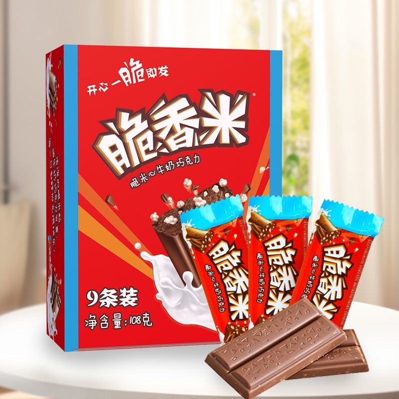 脆香米牛奶夹心巧克力108g盒装小吃礼物休闲零食糖果婚庆喜糖批发
