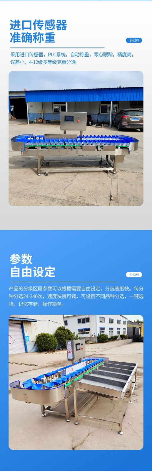 全自动土豆料盒重量分选机 螃蟹大闸蟹称重分选机 小龙虾分拣机器