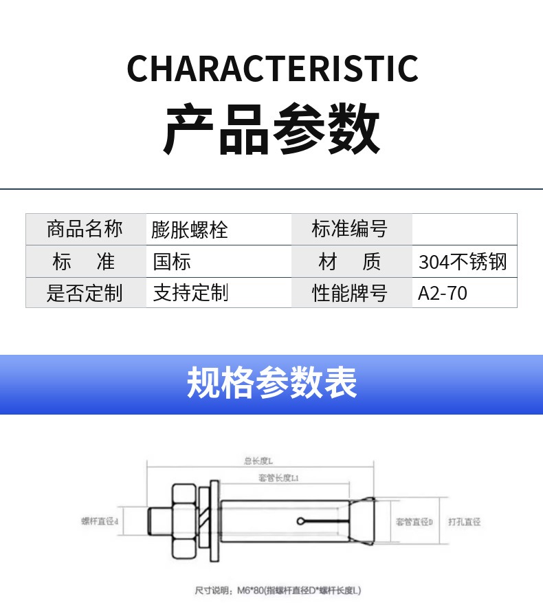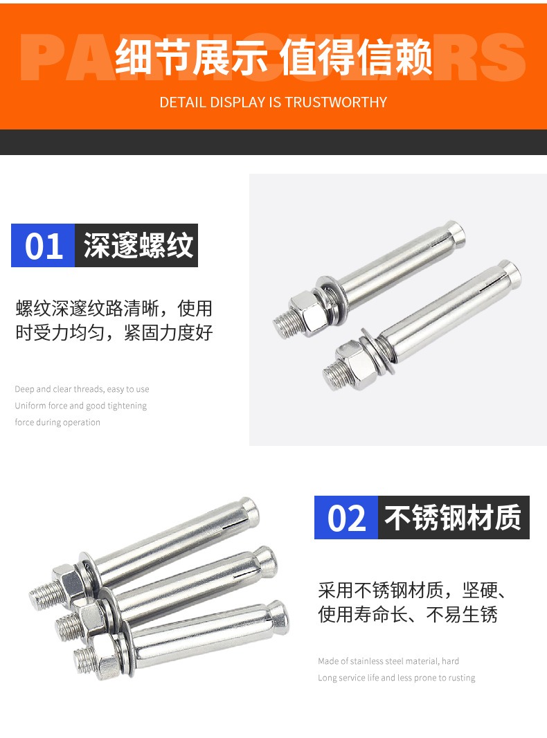 304膨胀螺丝不锈钢膨胀螺丝膨胀螺栓批发M6M8M10M12M14M16M18M20