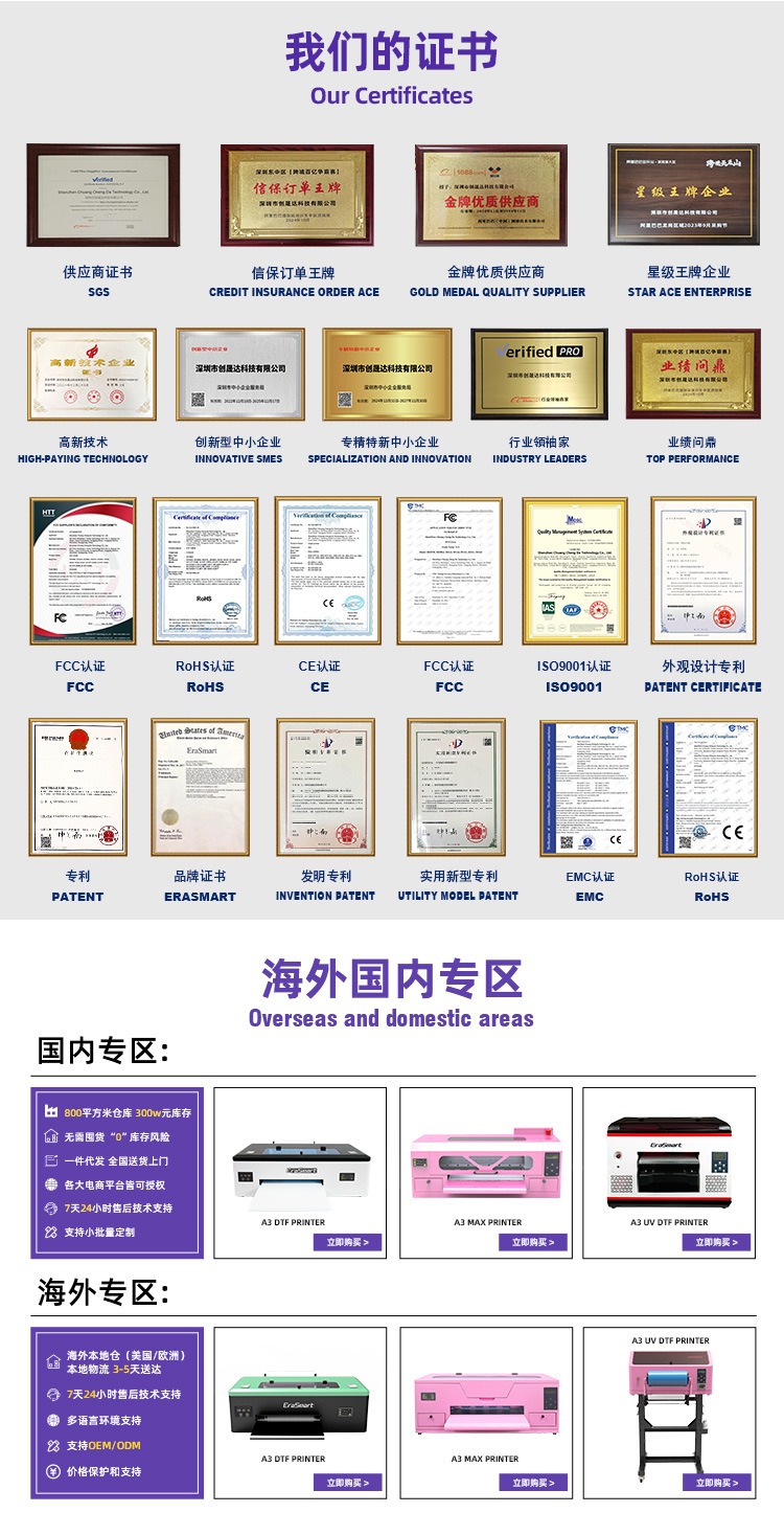 EraSmart A3 DTF热转印烫画机小型帽子衣服T恤创业图案打印机