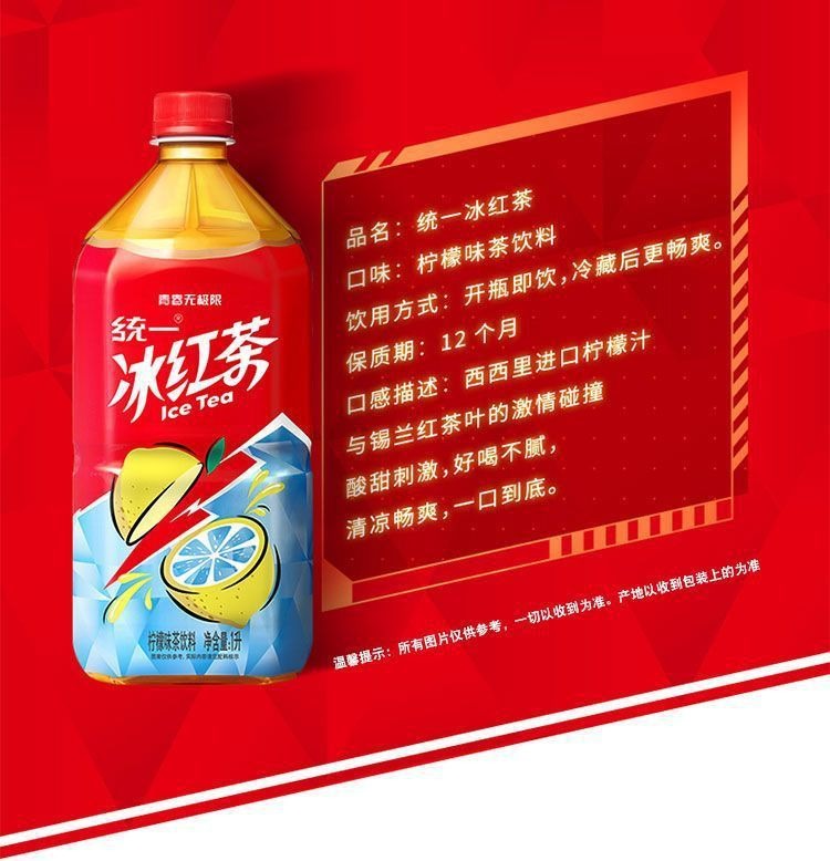 统一柠檬味冰红茶绿茶1升8瓶装整箱大瓶夏季冰爽果味茶饮 品批发