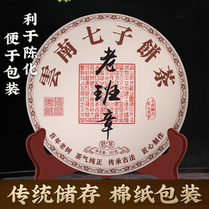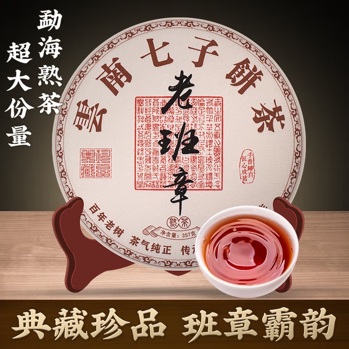 三隐 茶叶普洱茶熟茶云南勐海七子饼原料2017年老班章古树老茶饼357g