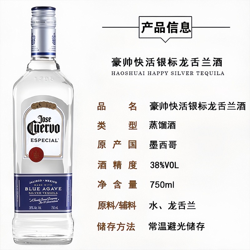 豪帅快活银标龙舌兰葡萄酒Jose Cuervo洋酒鸡尾酒调酒基酒750ml