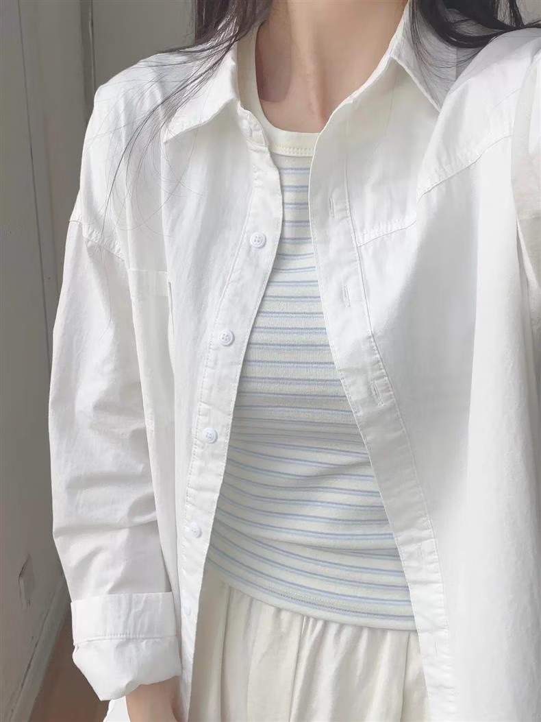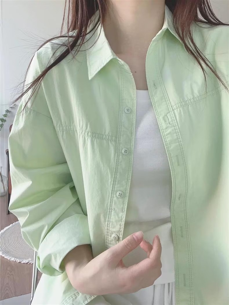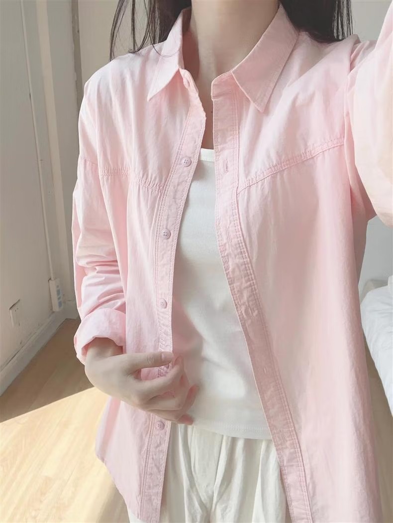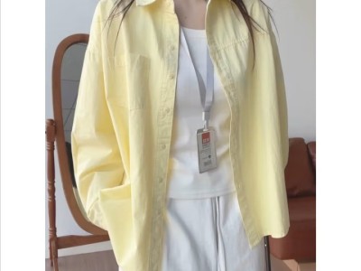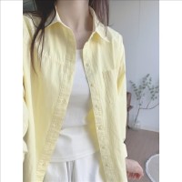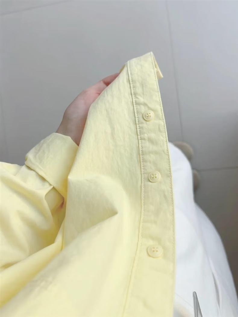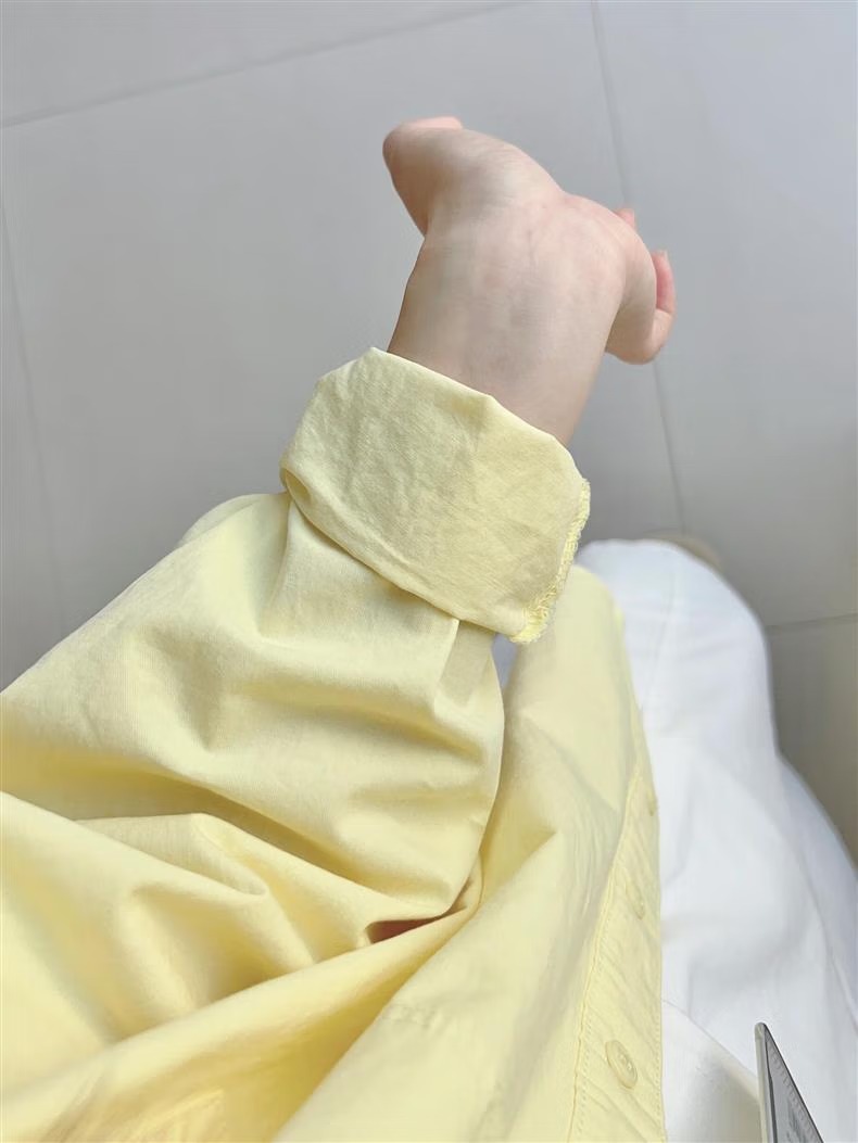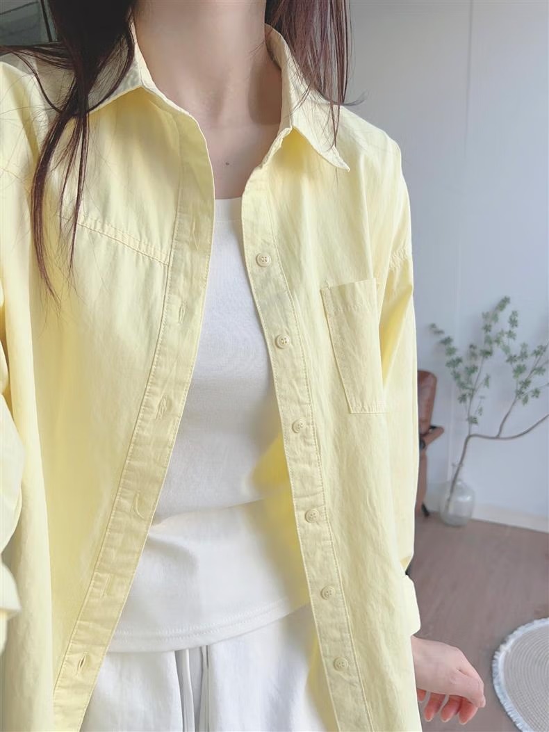 多巴胺奶黄色纯棉衬衫外穿防晒2025夏季女宽松衬衣外套