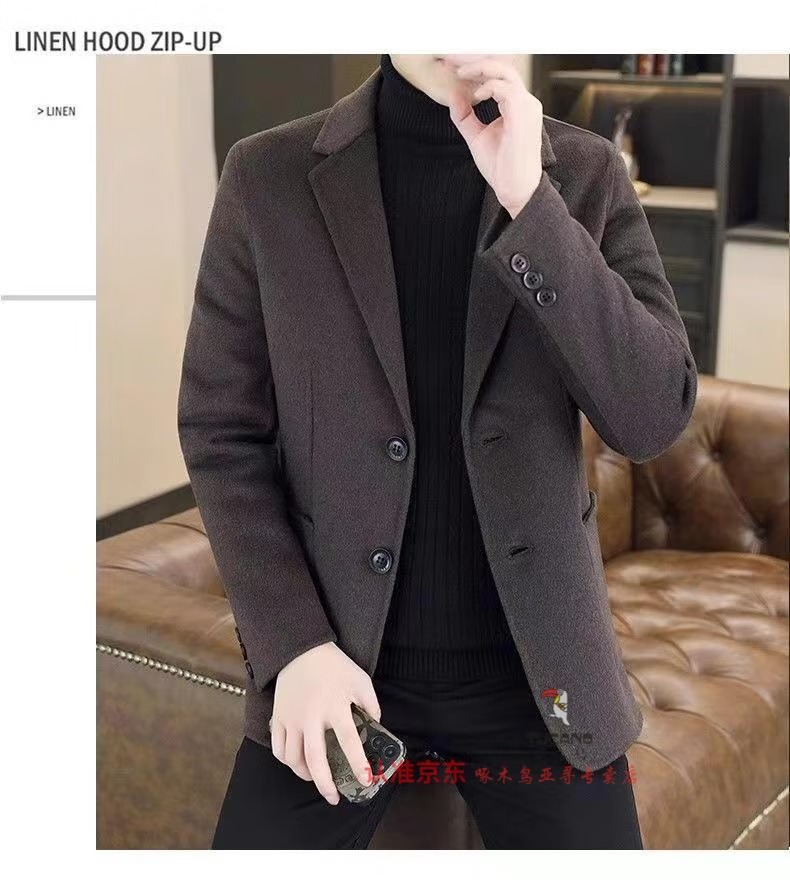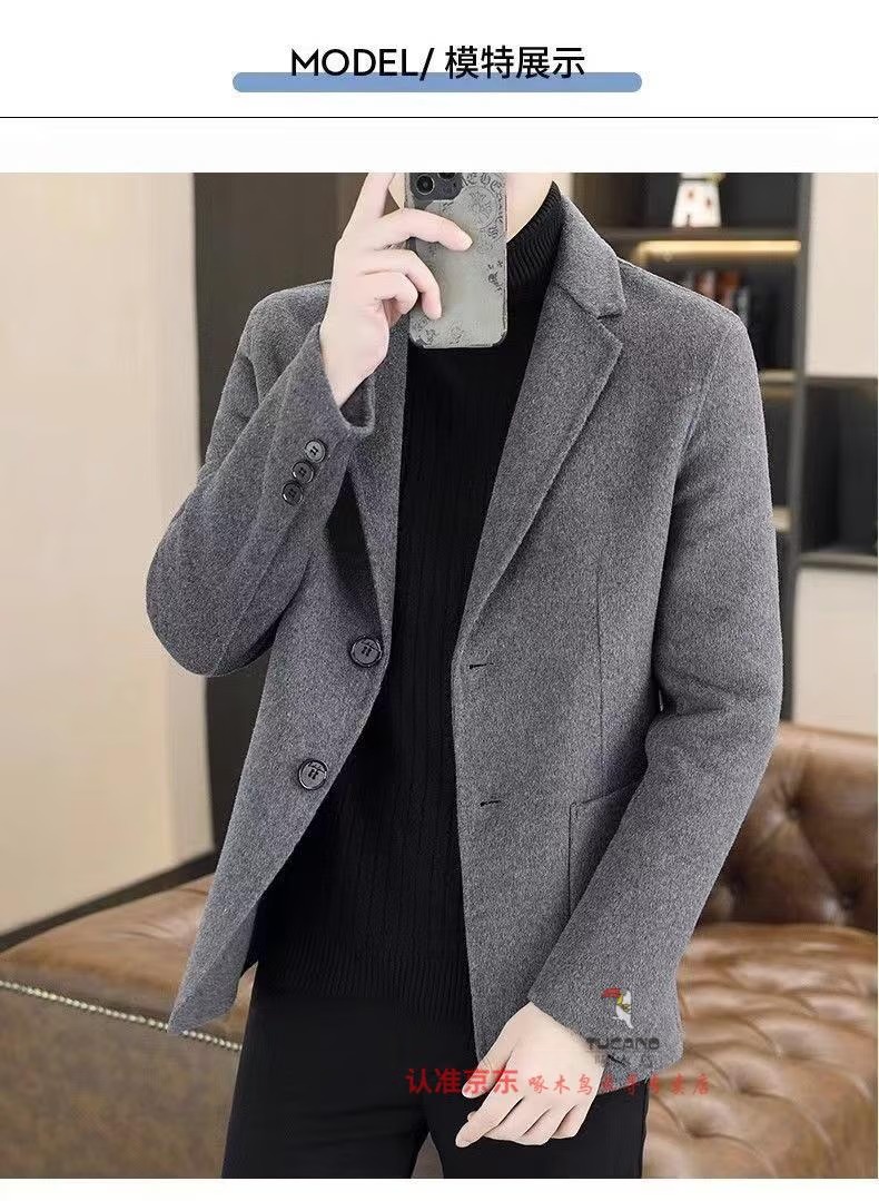 啄木鸟(TUCANO)2025毛呢大衣男士西服秋冬季新款西装短款呢子外套商务休闲潮