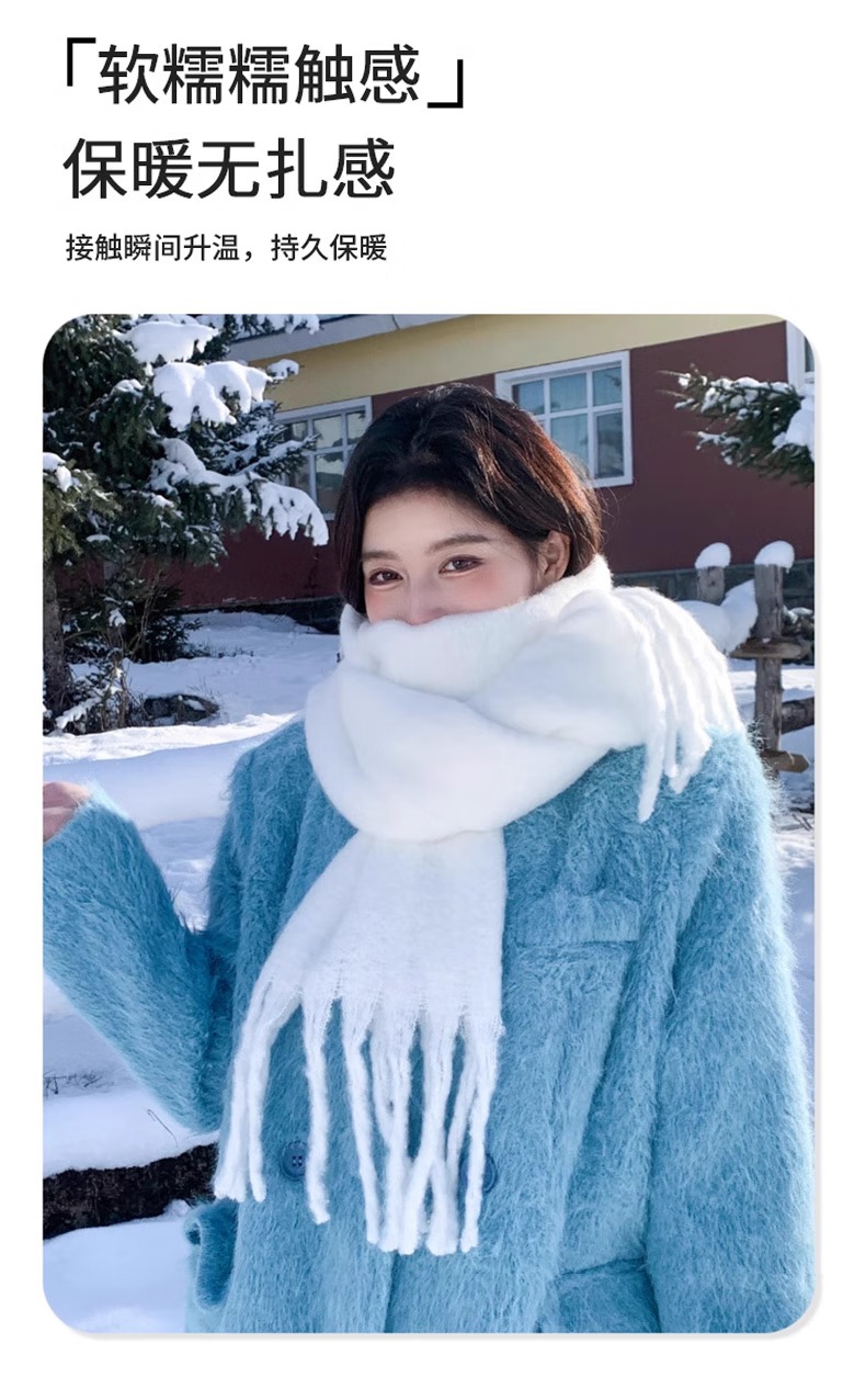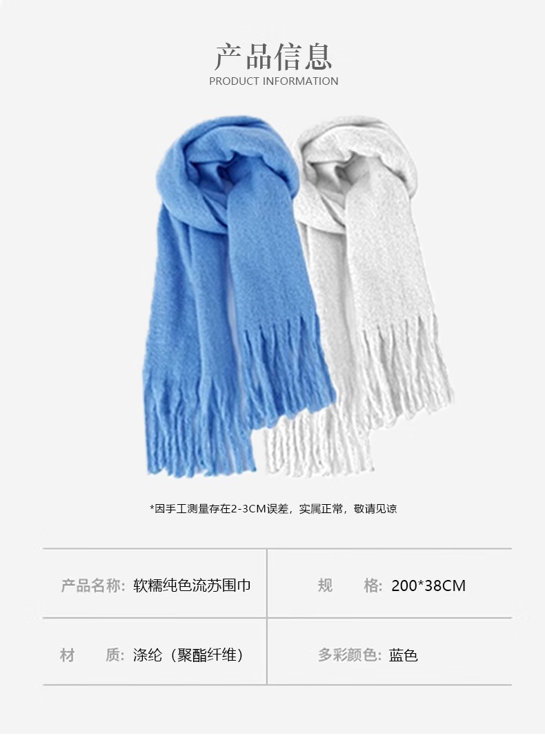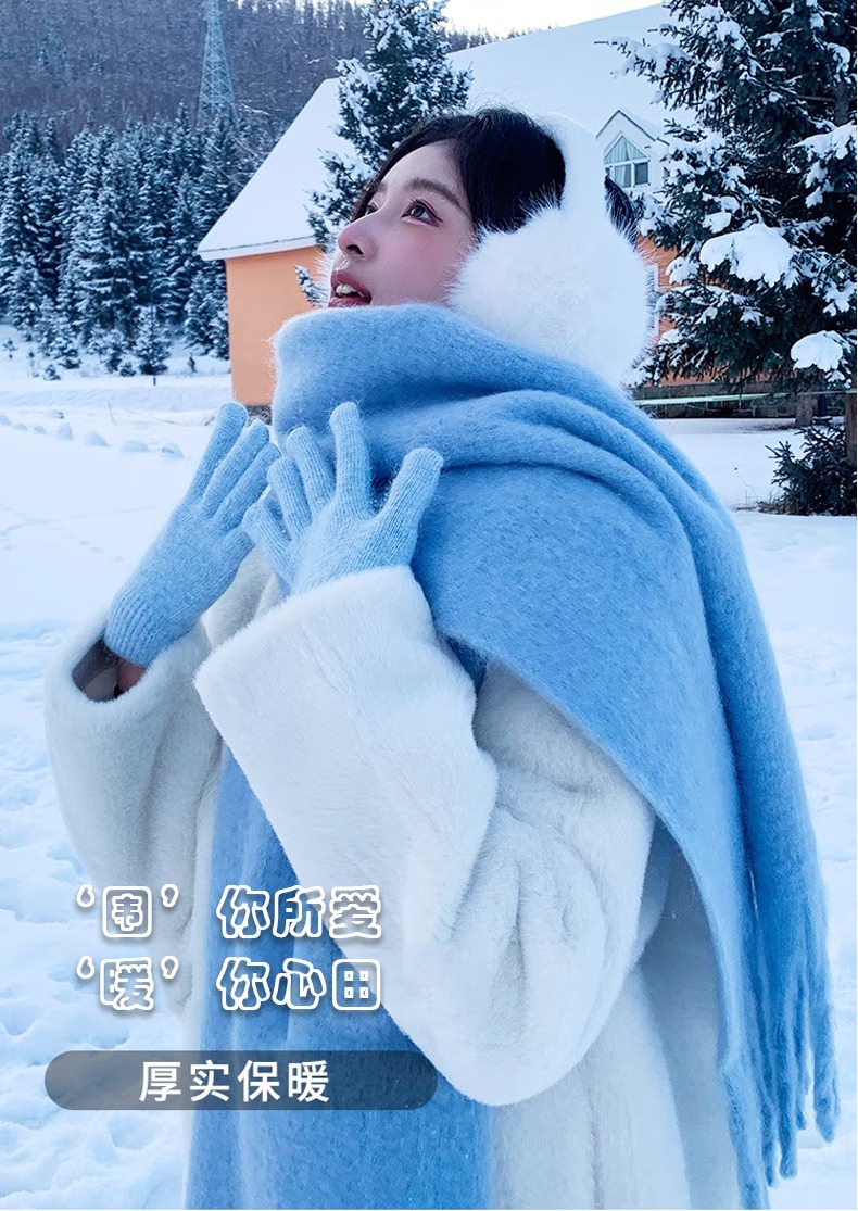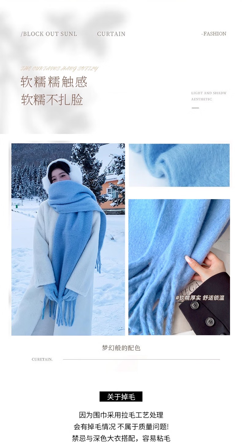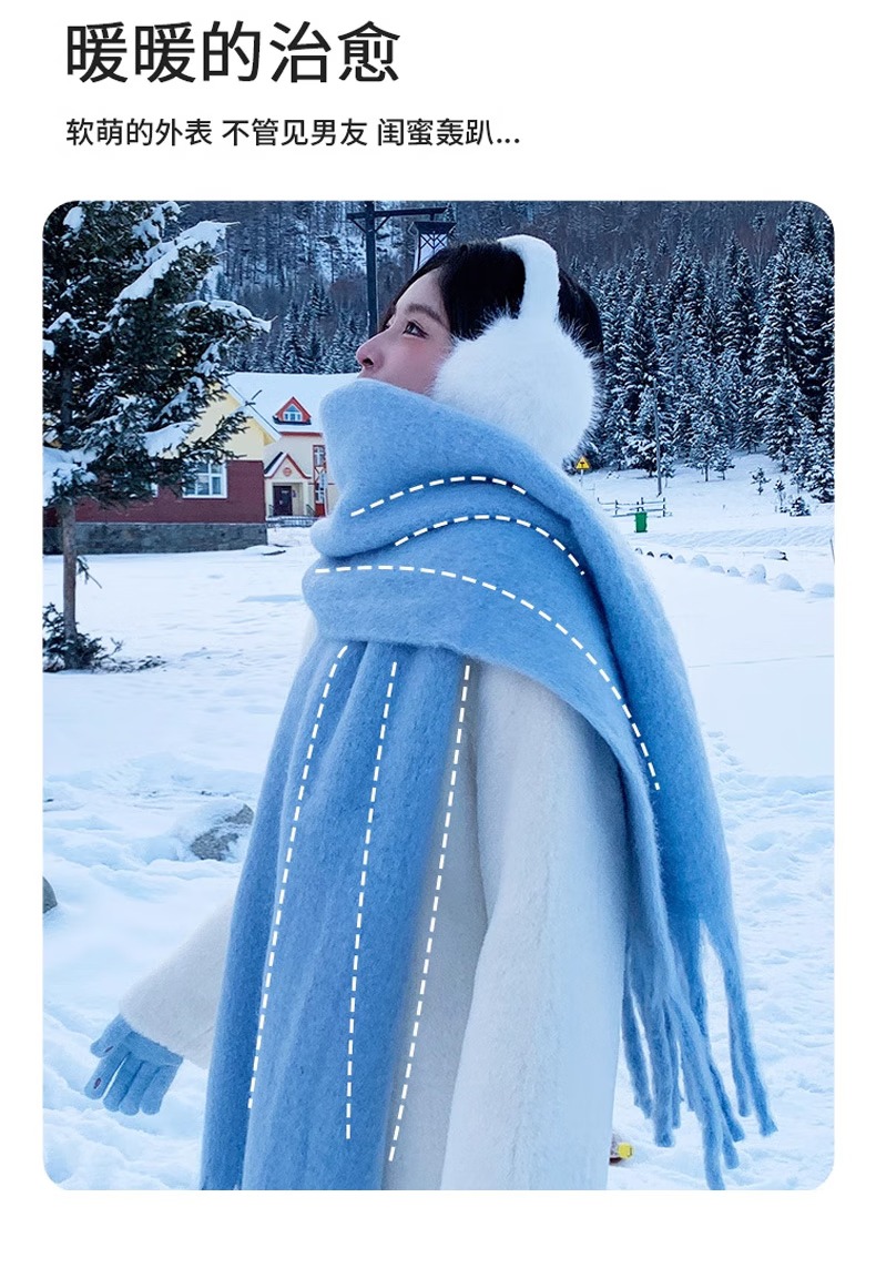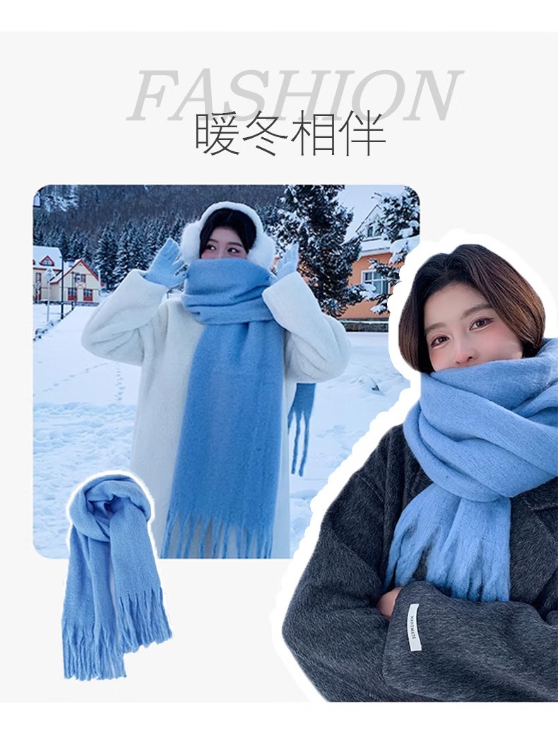 南木熊软糯蓝色围巾女冬季韩版百搭高级感保暖流苏大披肩纯色圣诞礼物