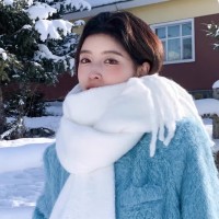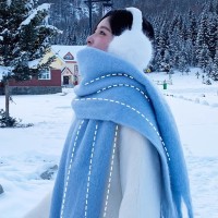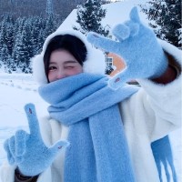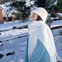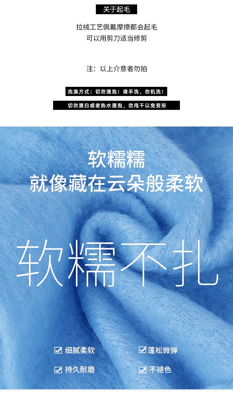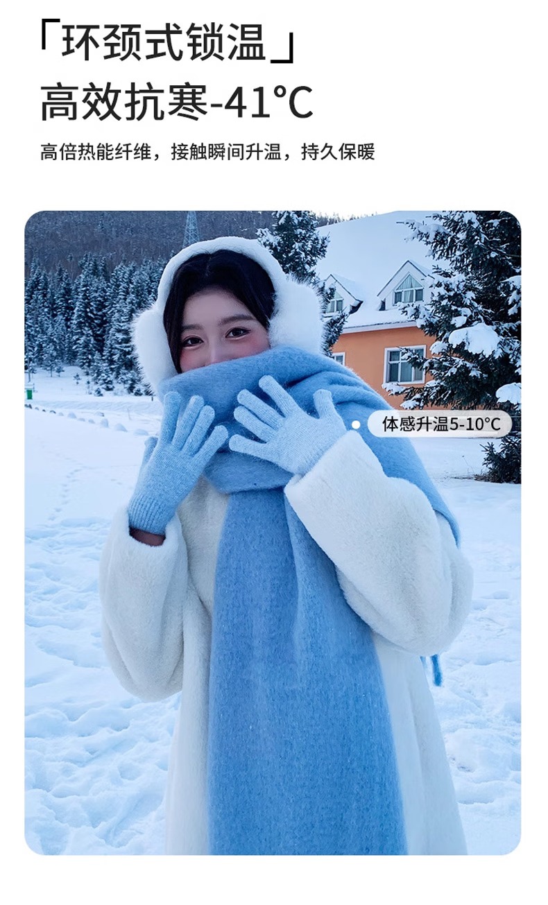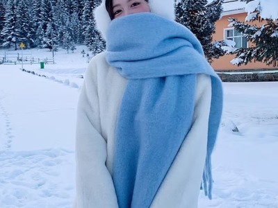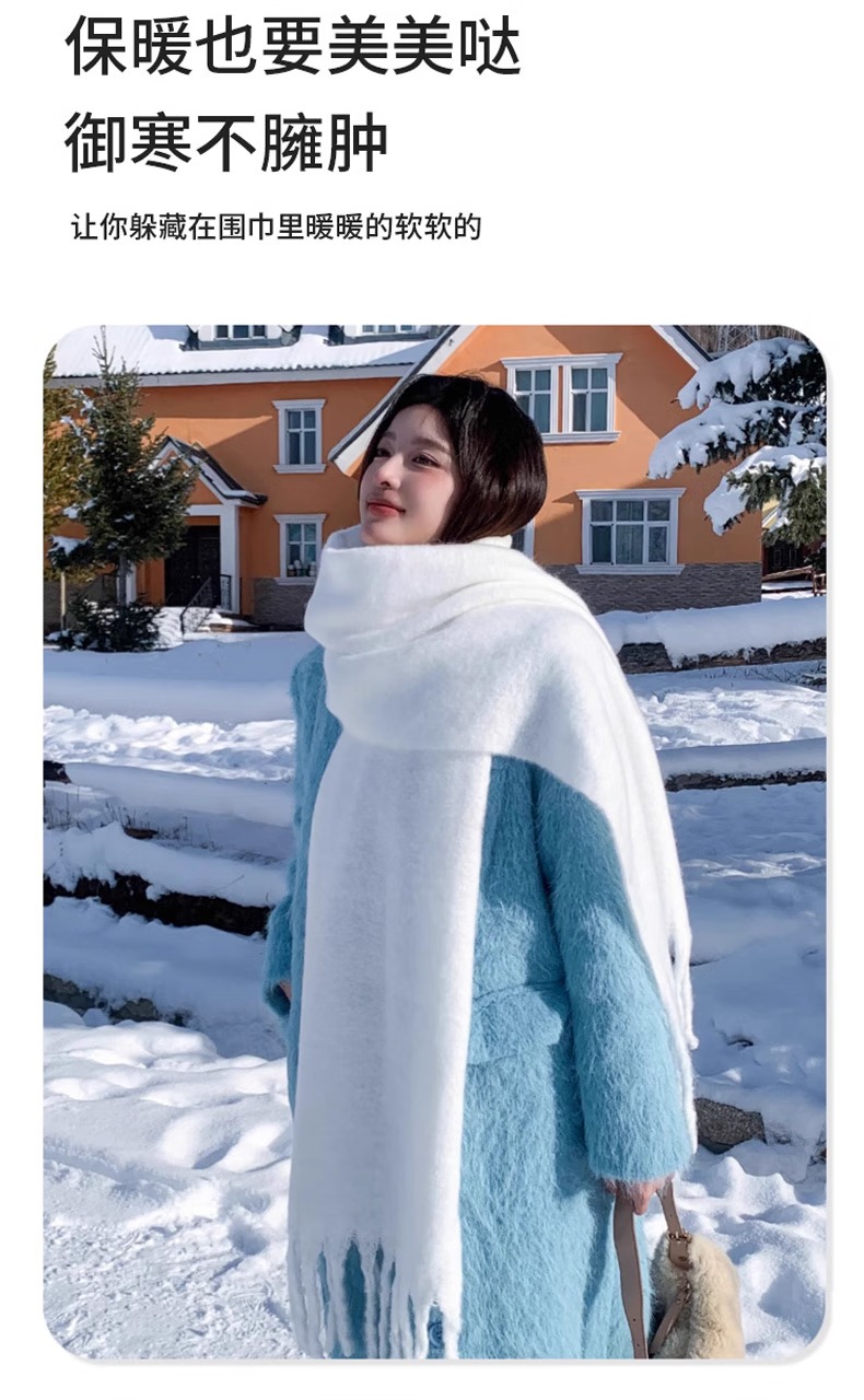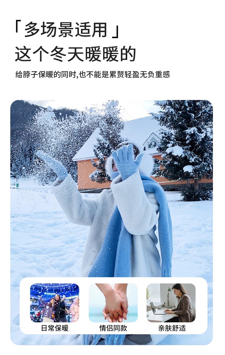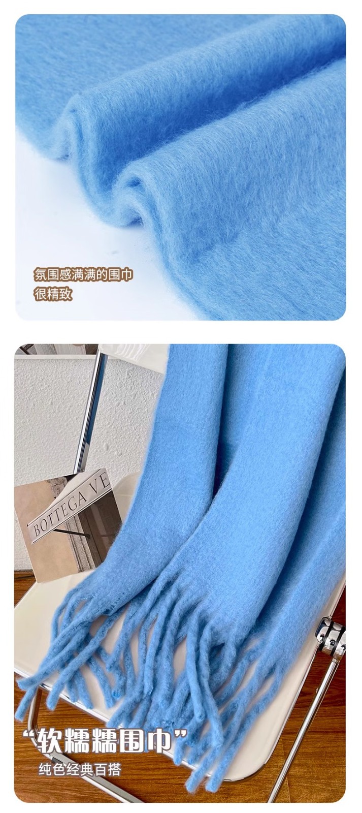 南木熊软糯蓝色围巾女冬季韩版百搭高级感保暖流苏大披肩纯色圣诞礼物