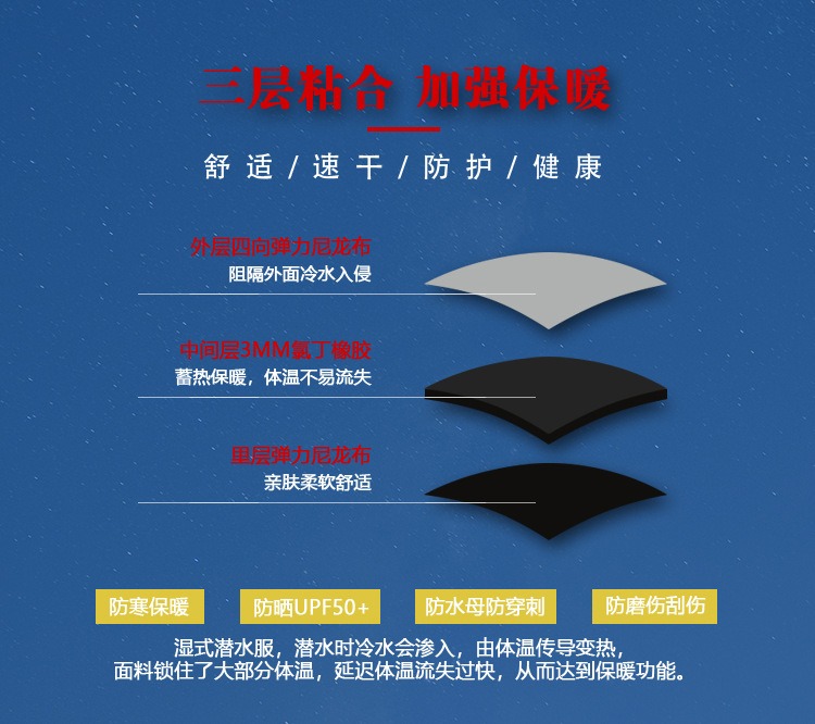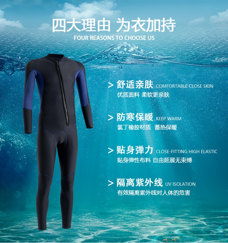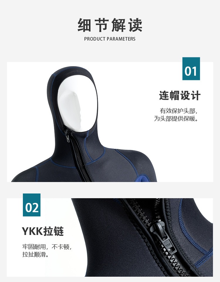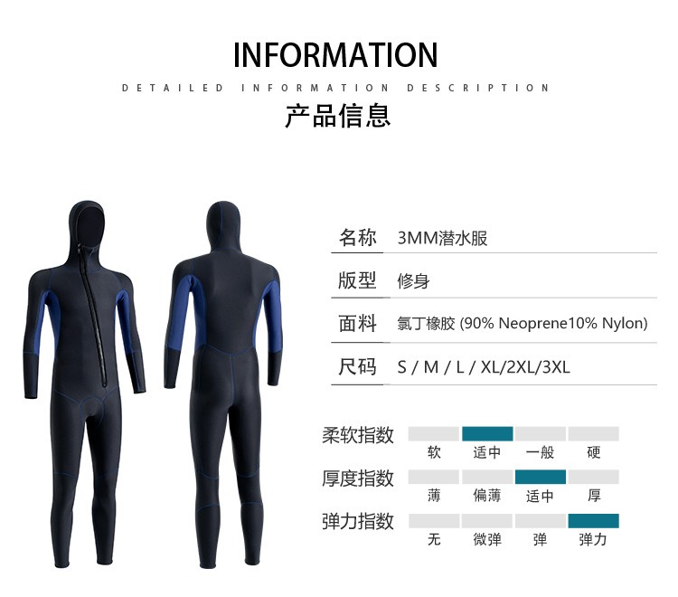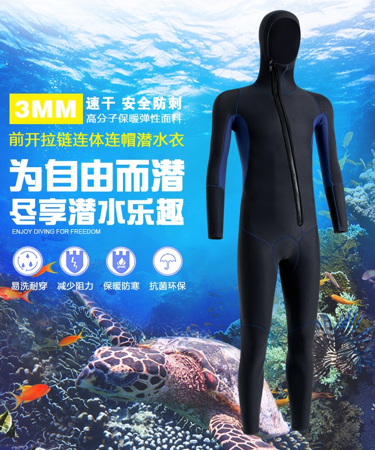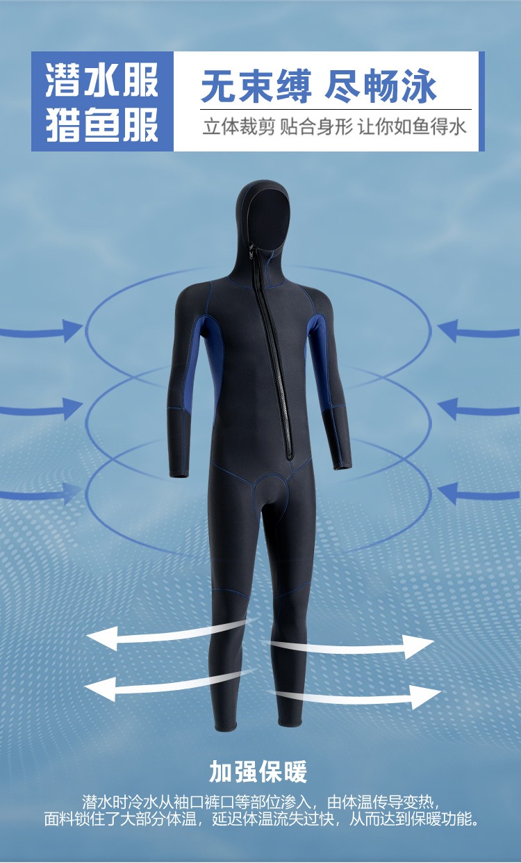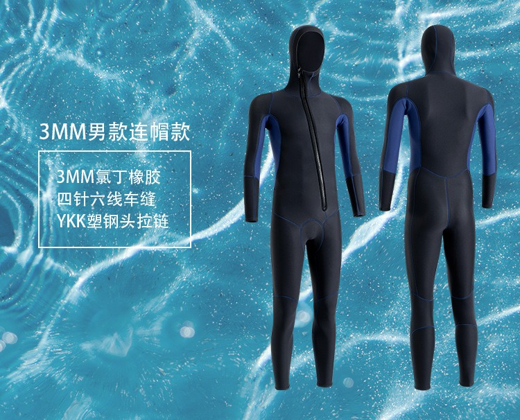 现货潜水服男3MM连帽保暖冬泳衣防寒湿式冲浪服浮潜连体潜水衣
