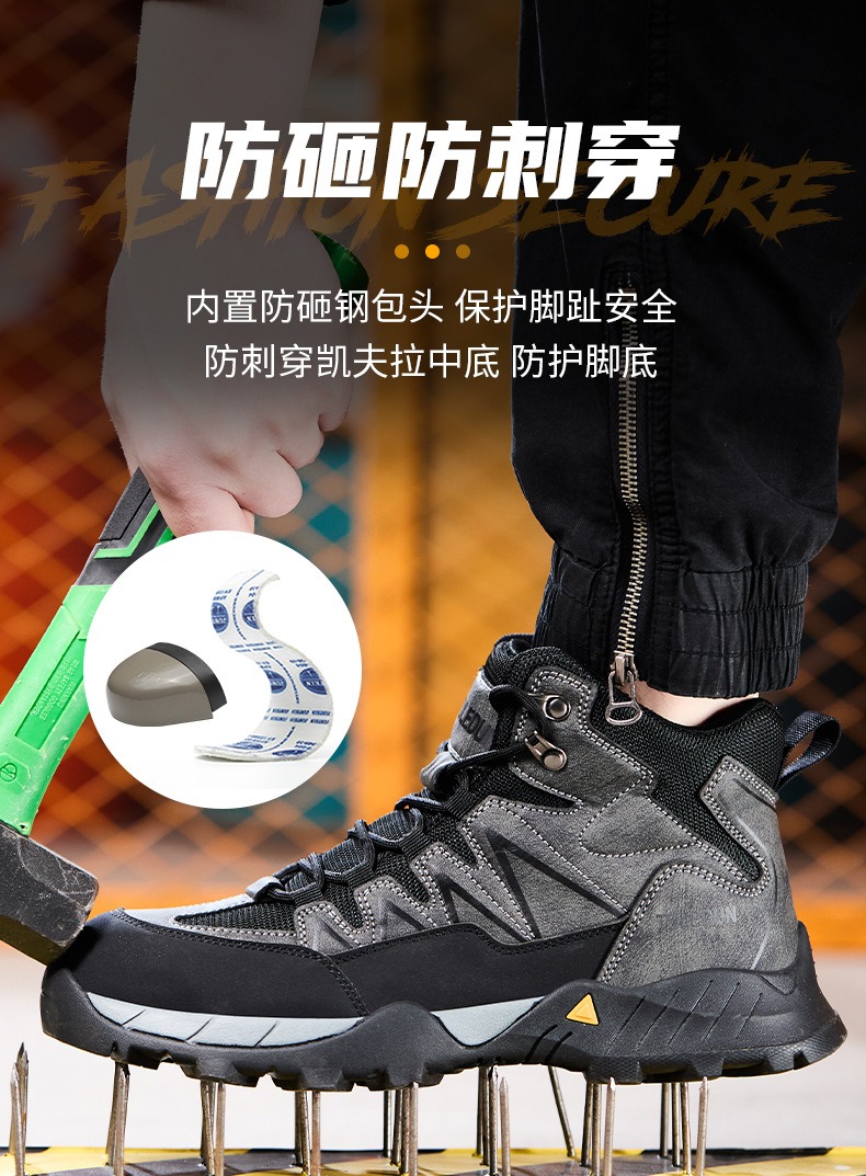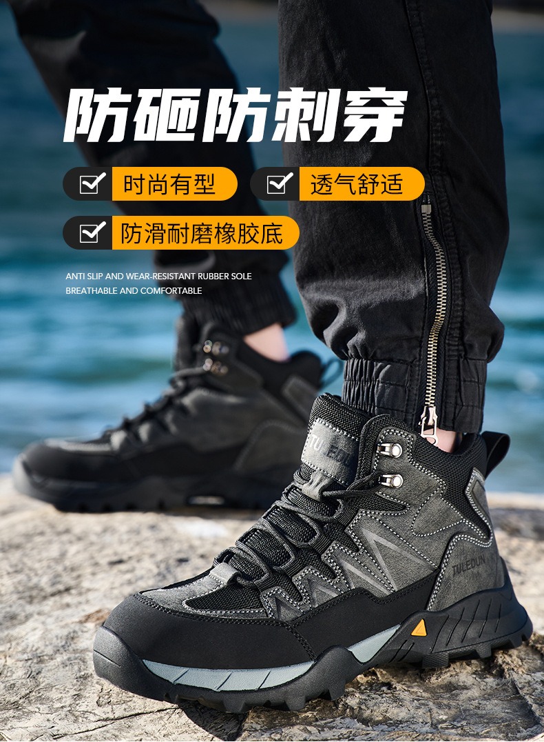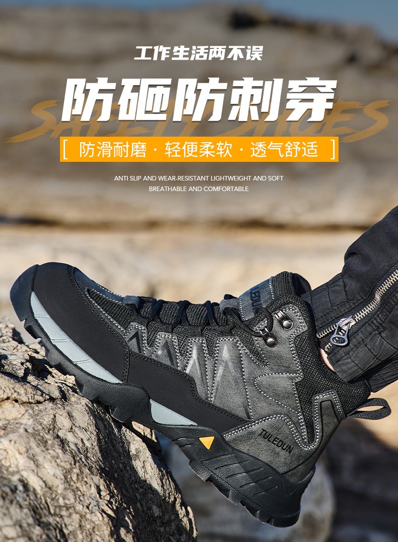 跨境代发2025四季款新款男高帮劳保鞋户外登山鞋防砸防刺穿工作鞋