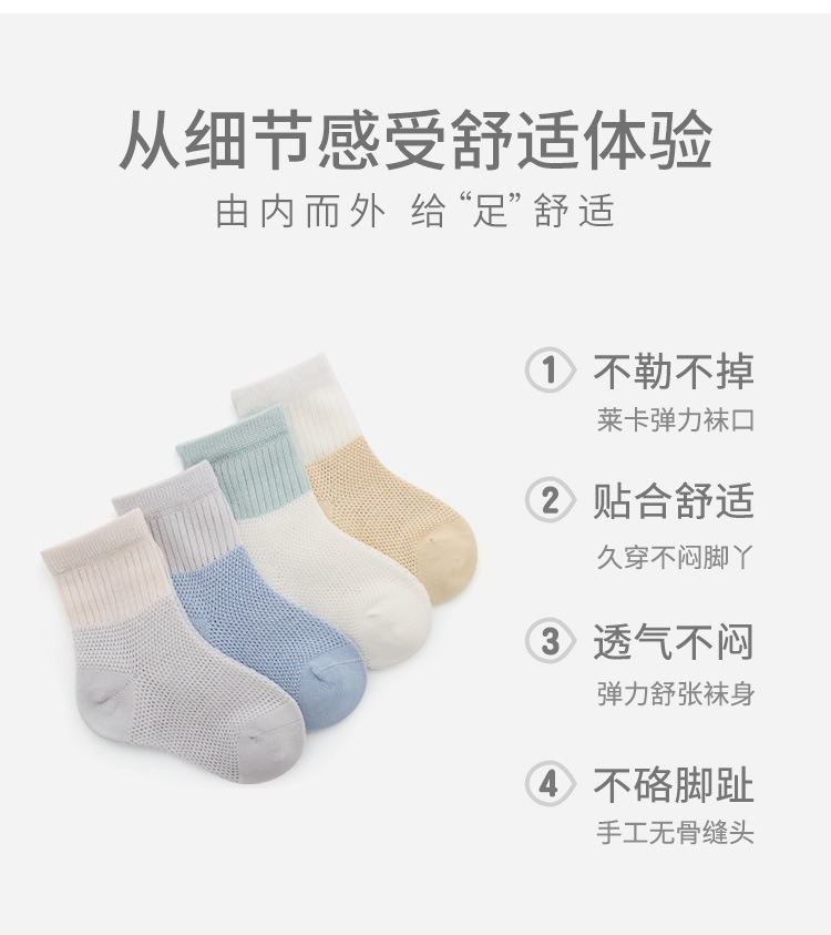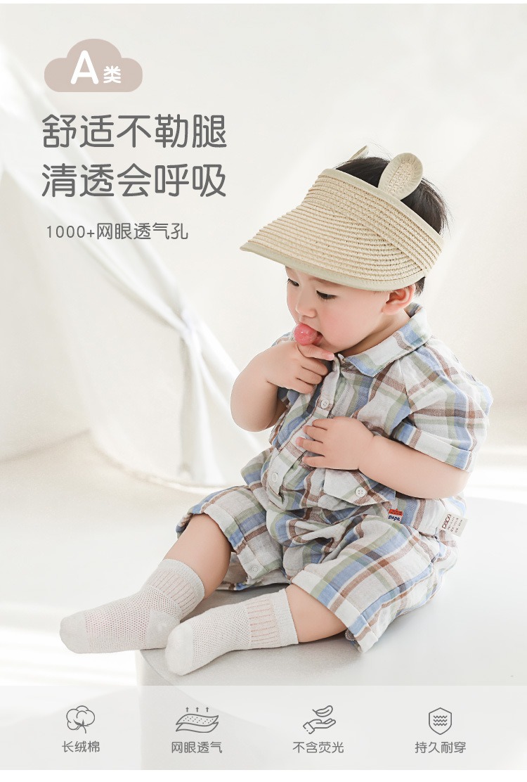 2024夏季新品新生儿宝宝袜松口无骨纯棉婴儿袜子纯色男女童中筒袜