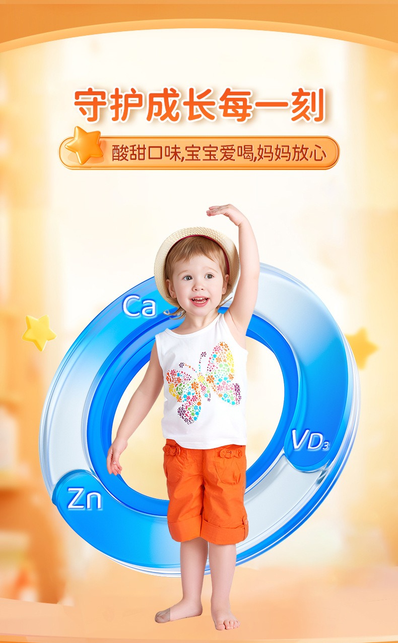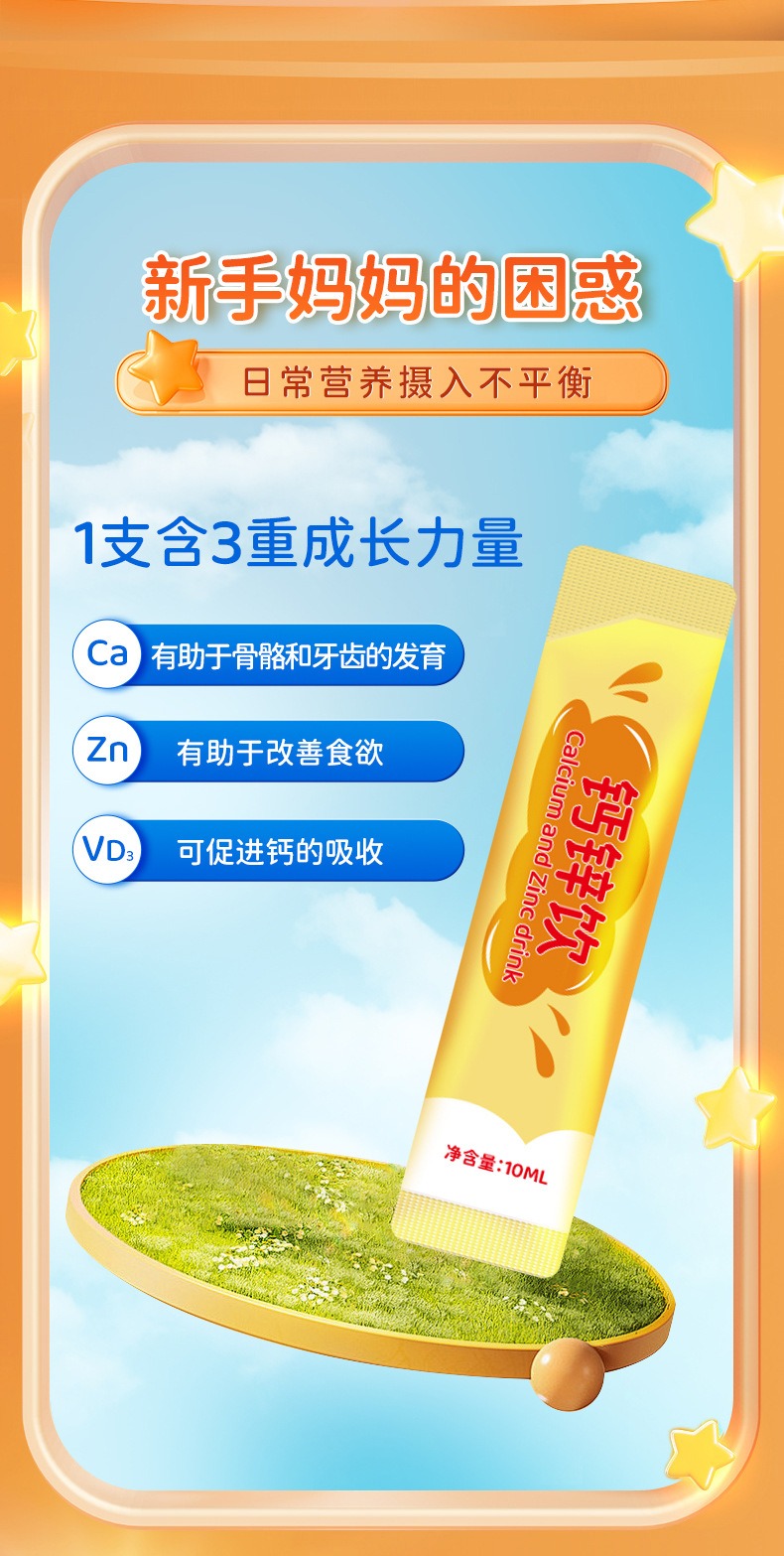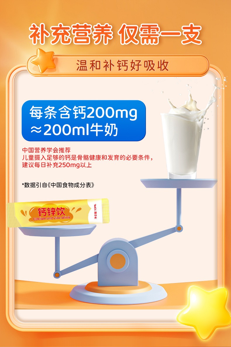 小黄条液体钙锌口服液维生素D3儿童青少年柠檬酸锌钙水果好喝的钙