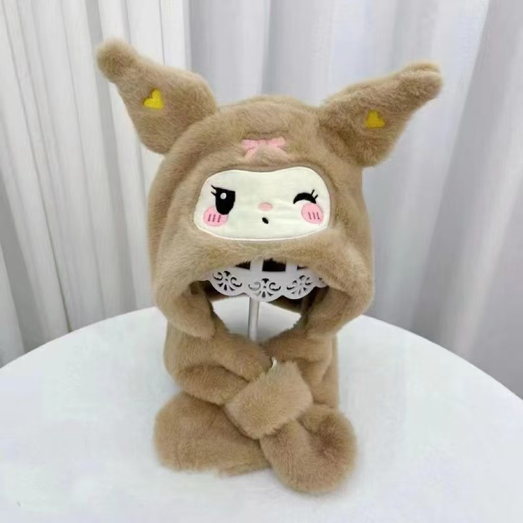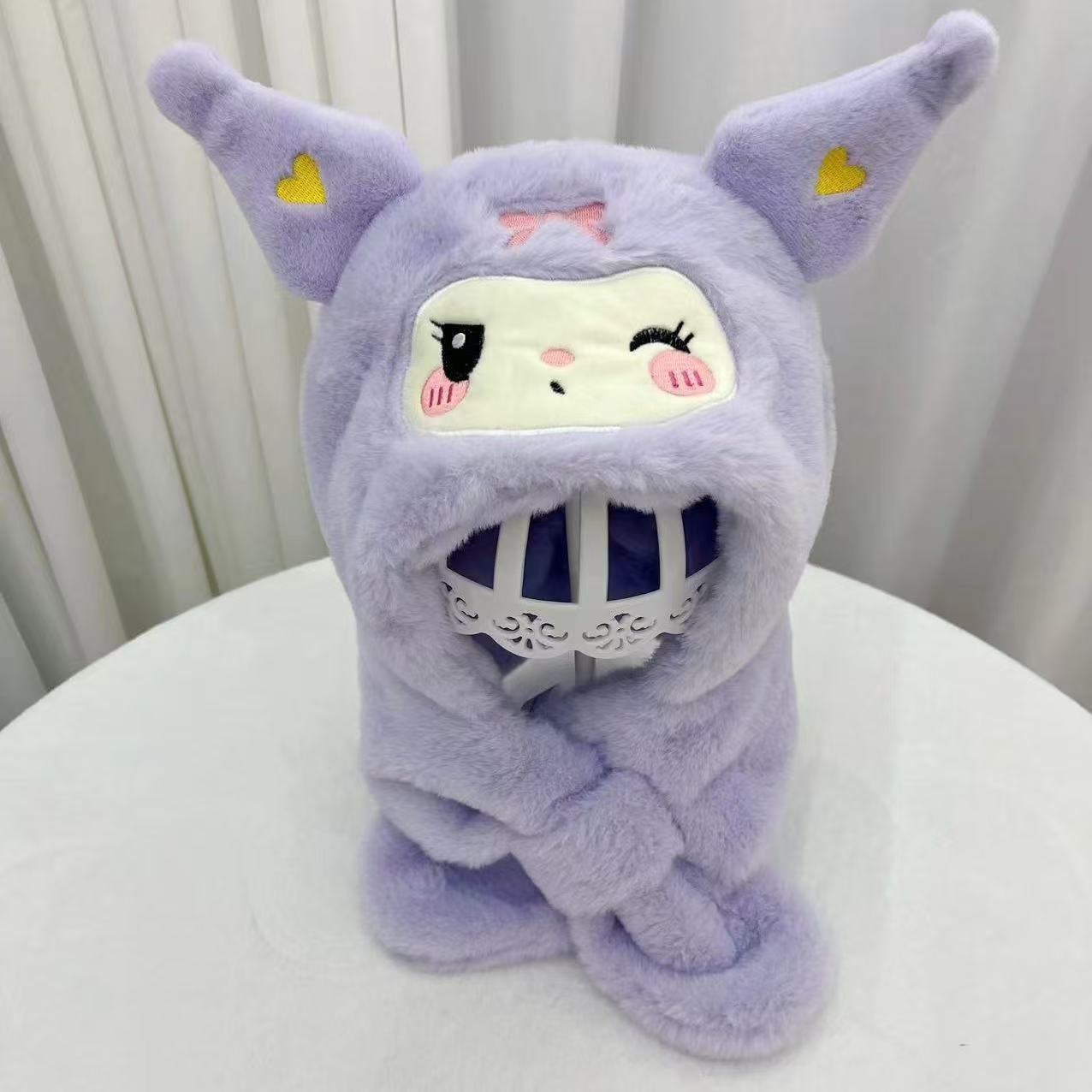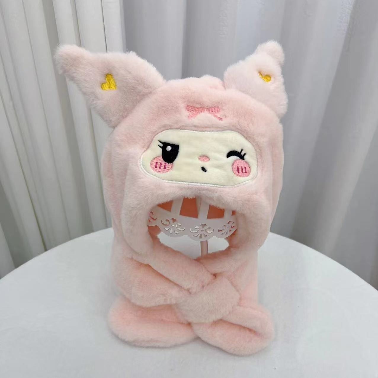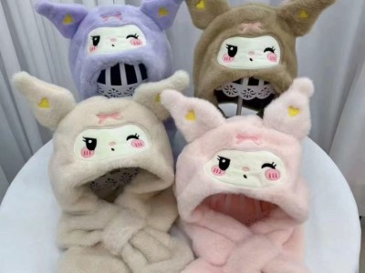 冬季库洛米儿童帽子围巾一体帽女童可爱围脖两件套保暖护耳毛绒帽
