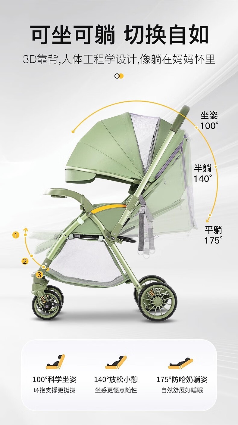 高景观双向婴儿推车遛娃宝宝儿童婴儿车可坐可躺轻便多功能