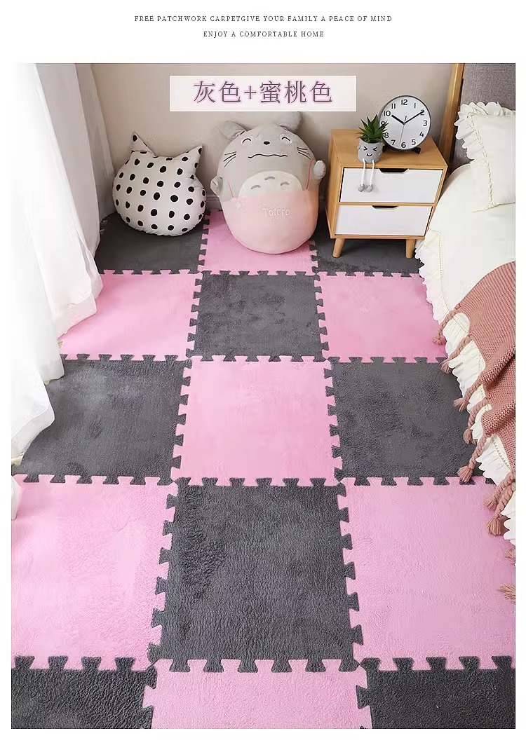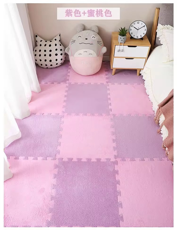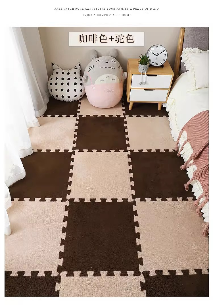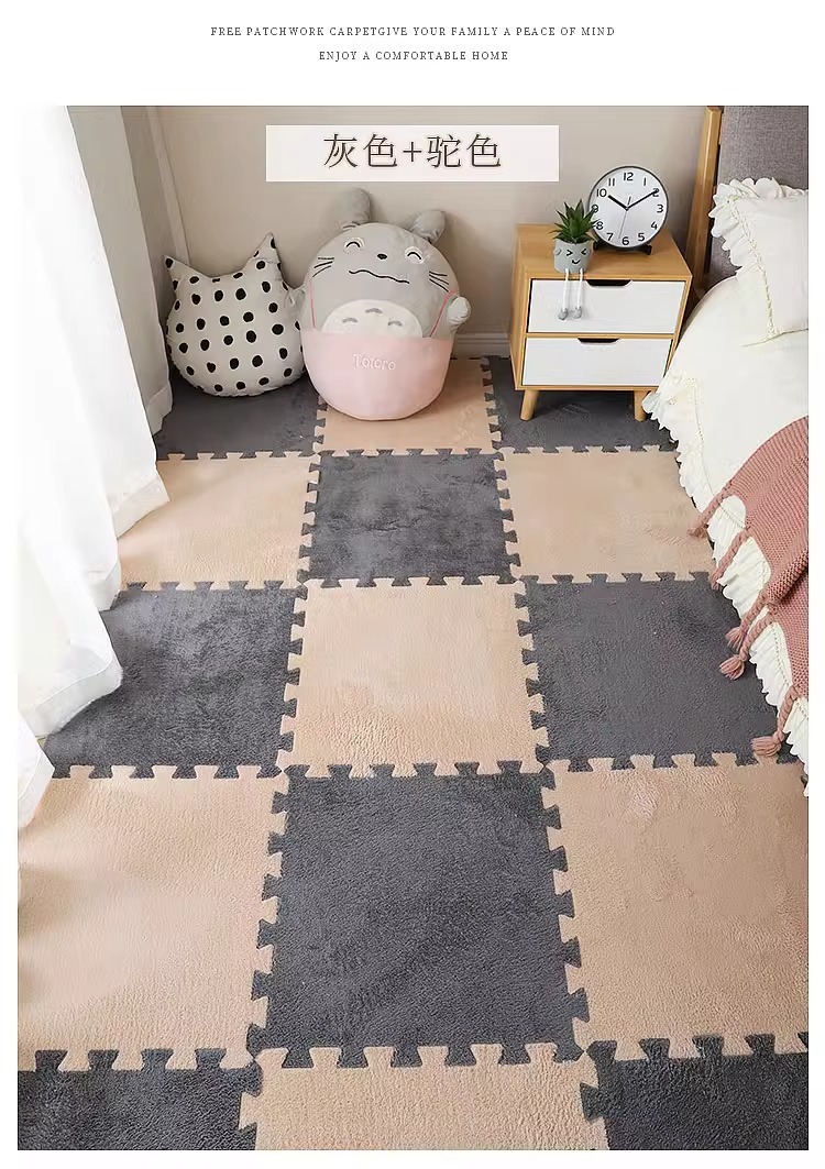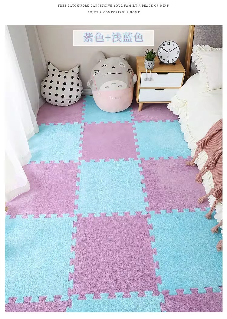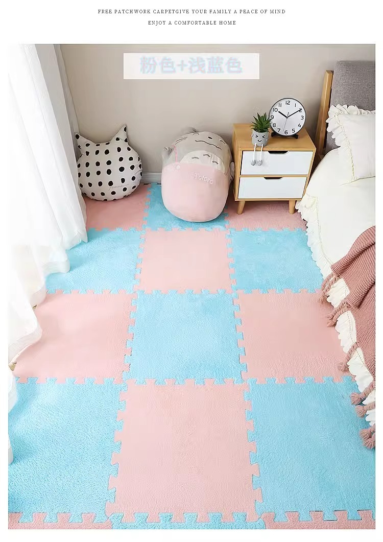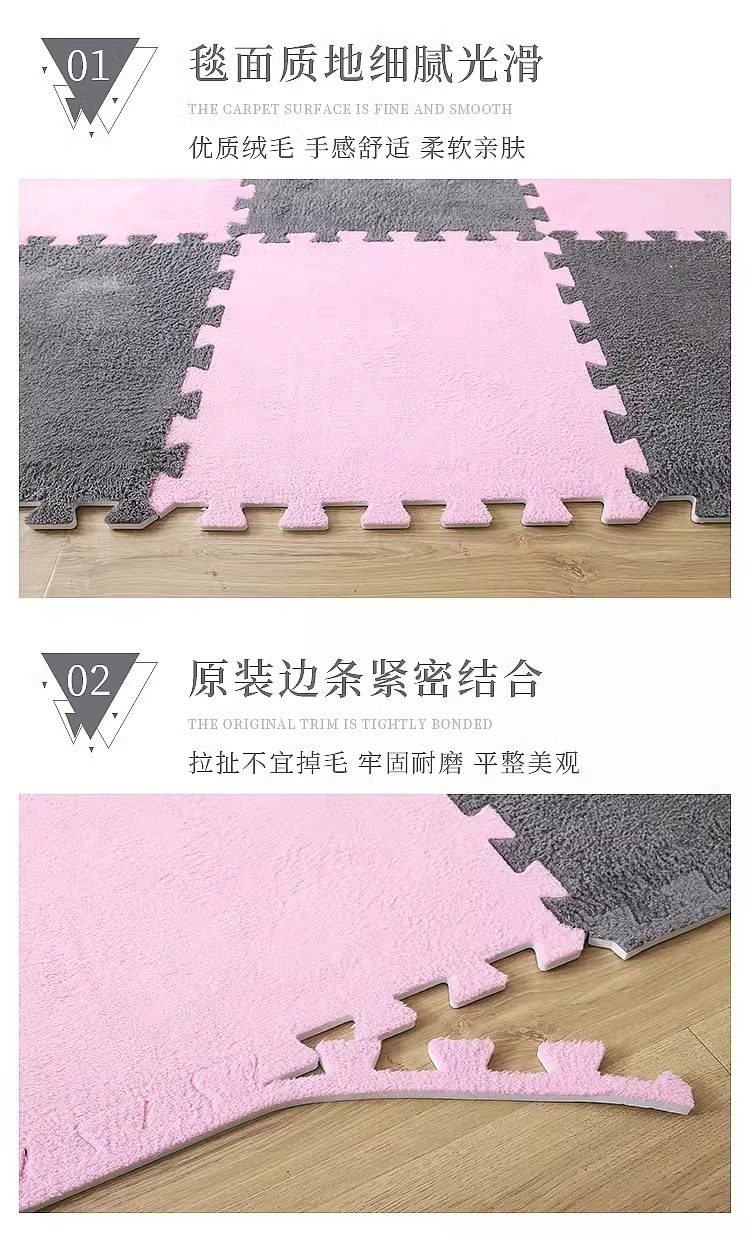毛绒儿童爬爬垫拼接大块房间耐脏加厚满铺泡沫地垫卧室米绒面地毯