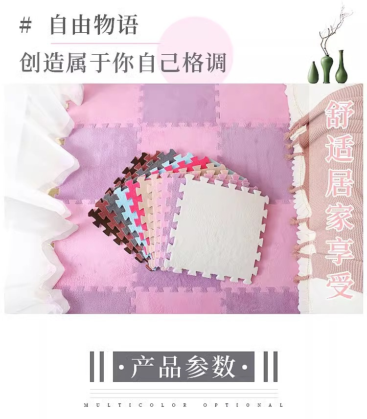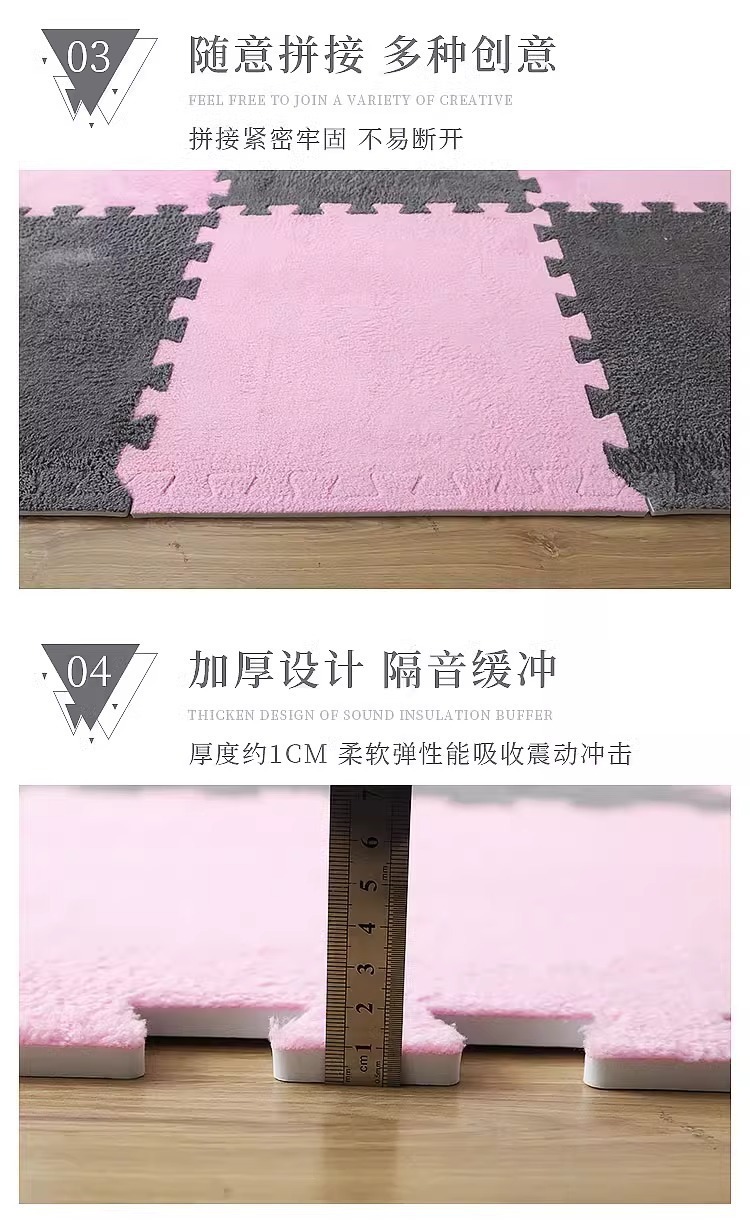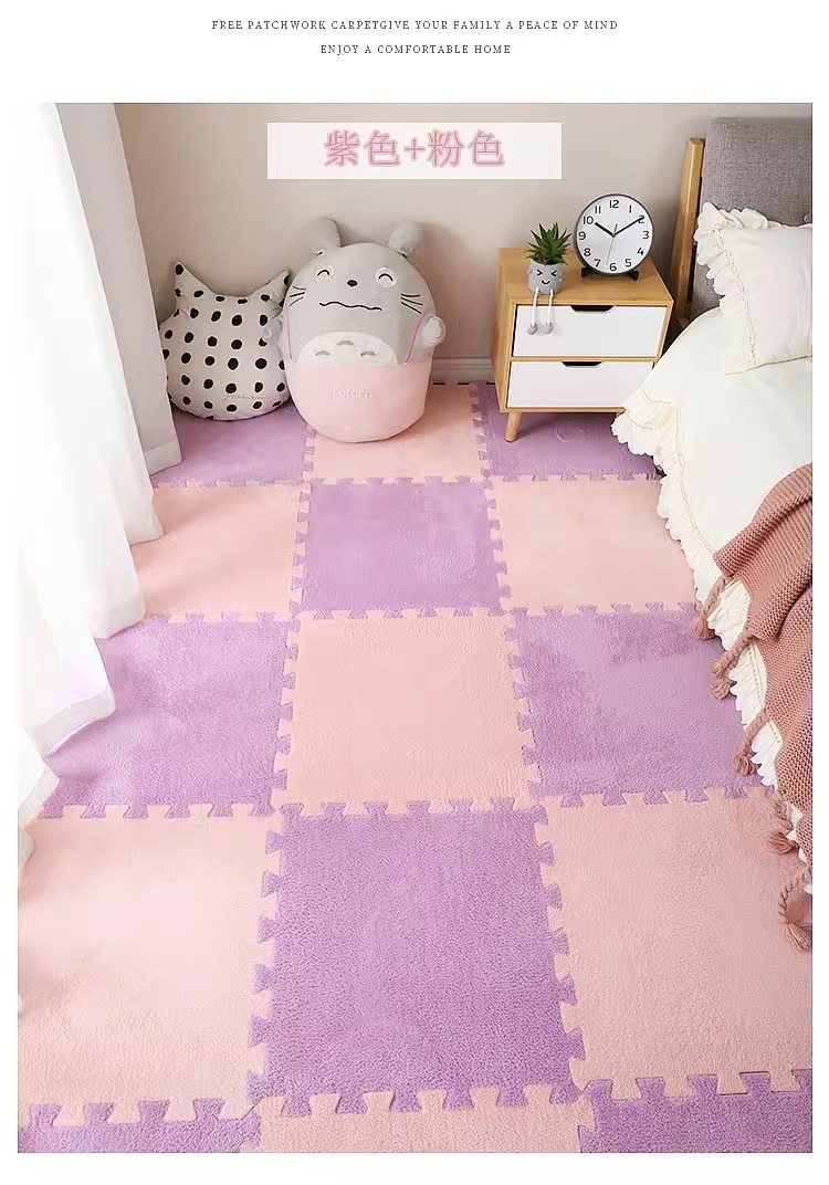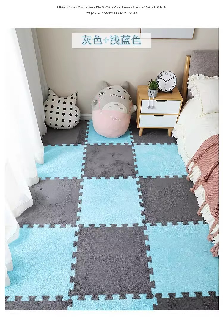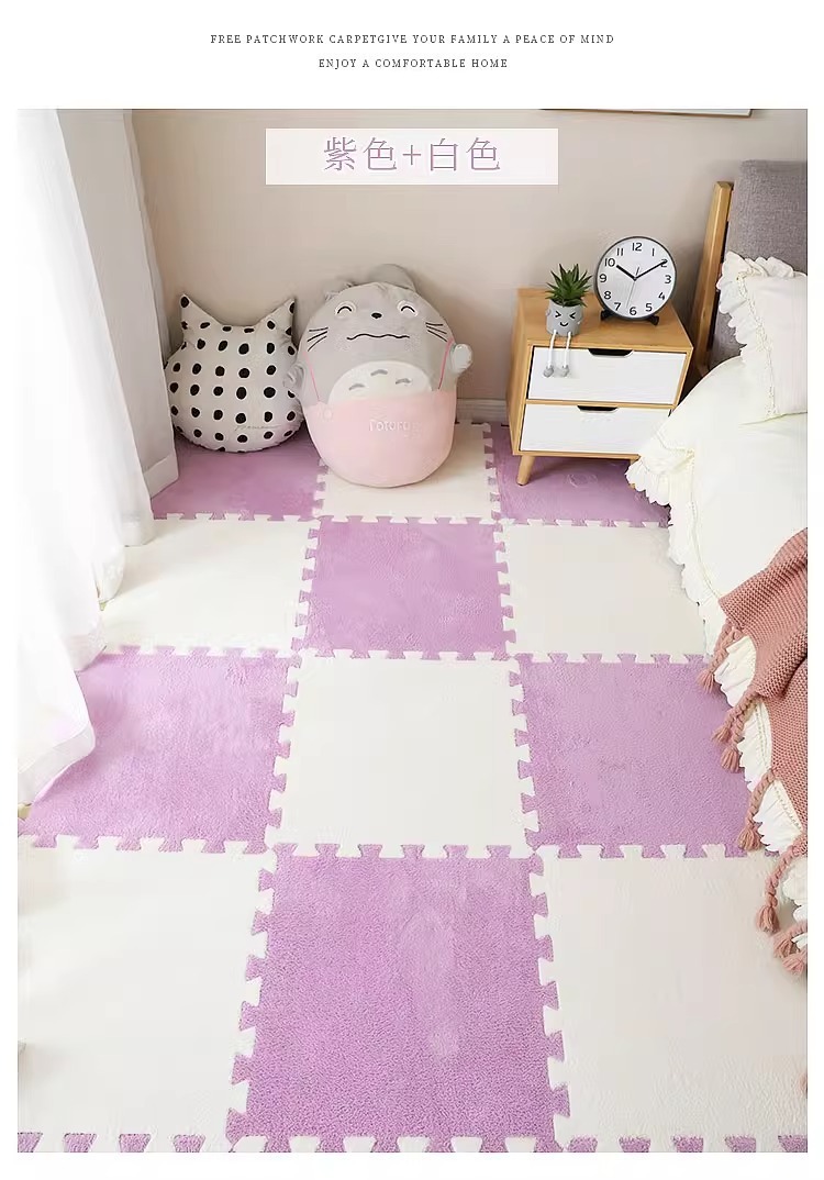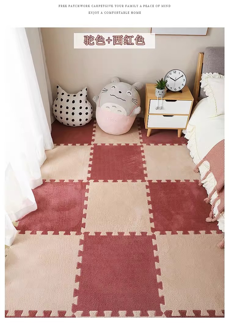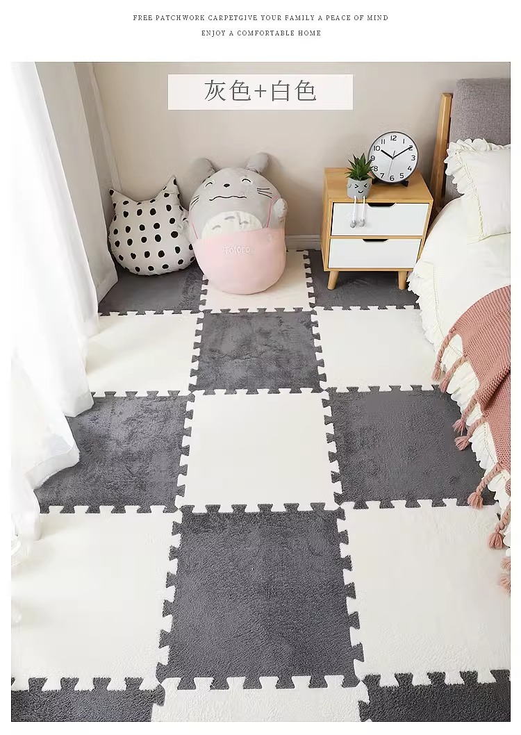 毛绒儿童爬爬垫拼接大块房间耐脏加厚满铺泡沫地垫卧室米绒面地毯