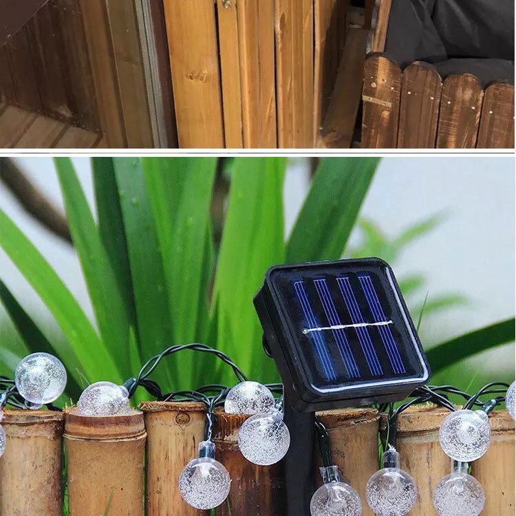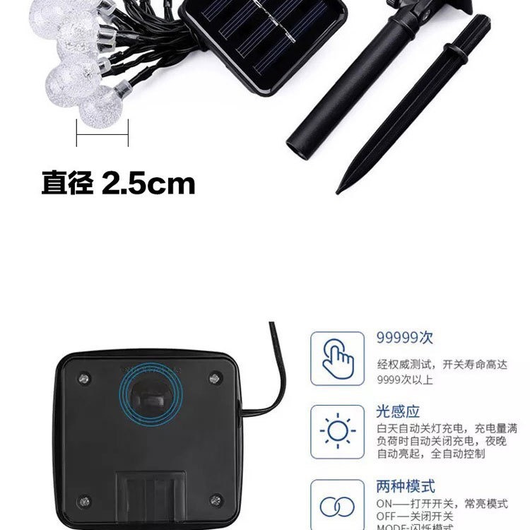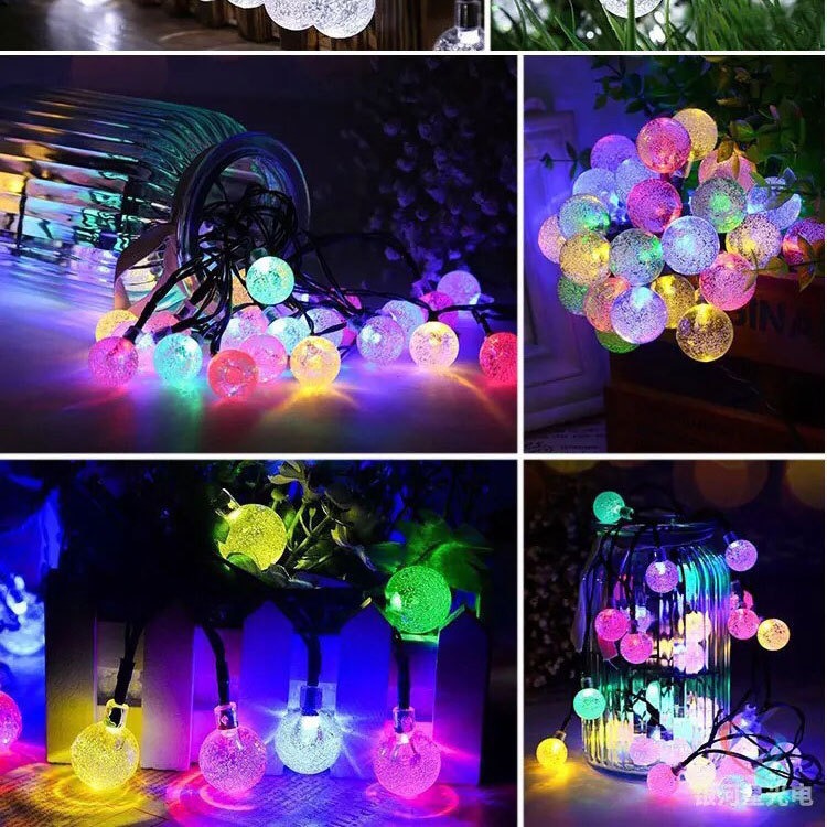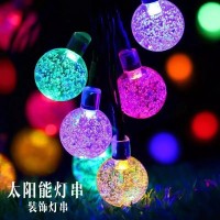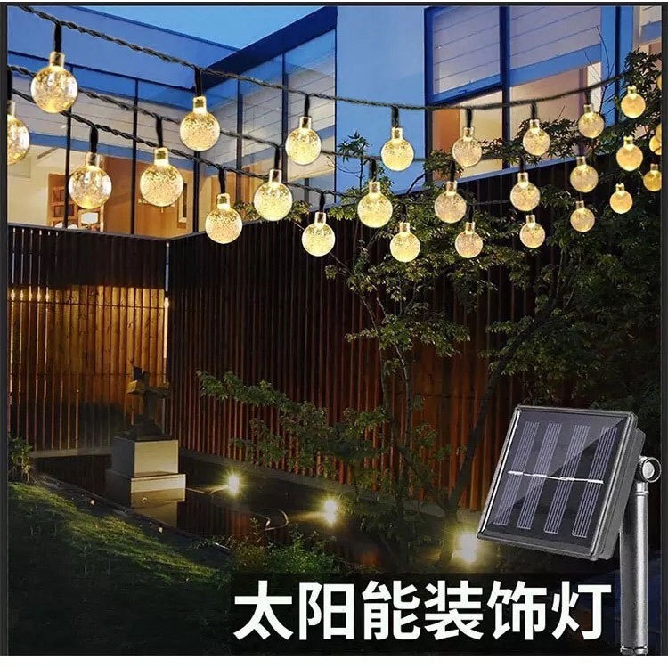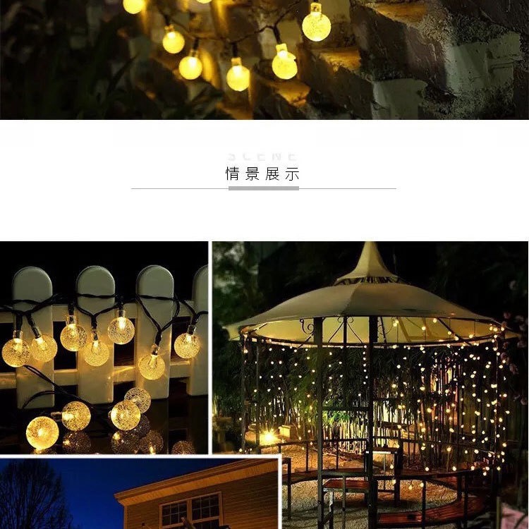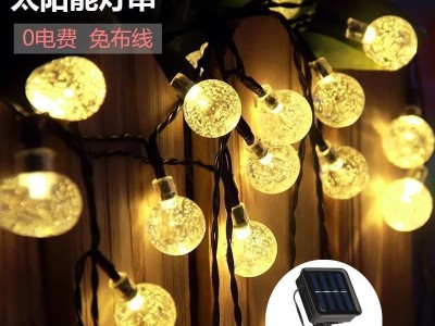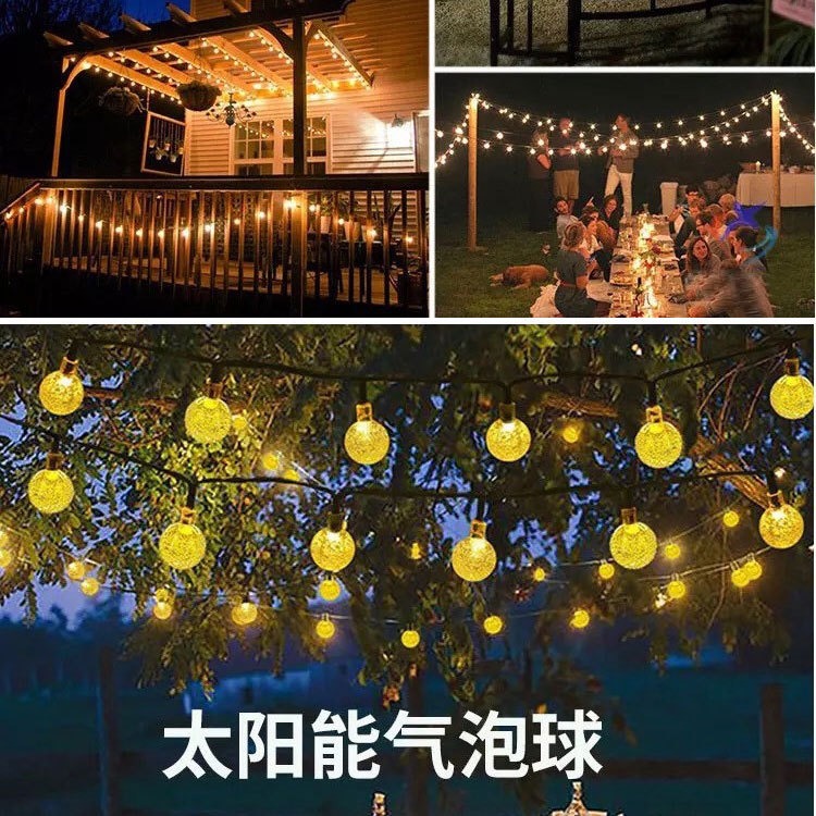气泡球太阳能灯串户外氛围灯led串灯防水露营庭院装饰水晶球彩灯