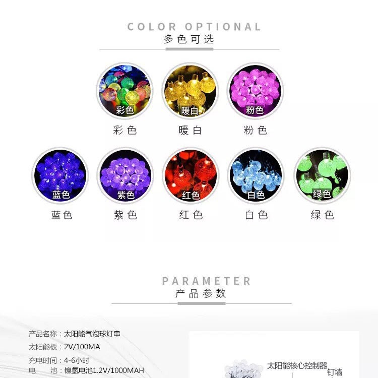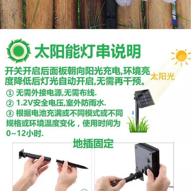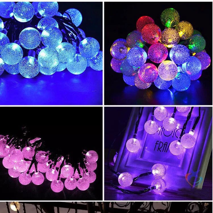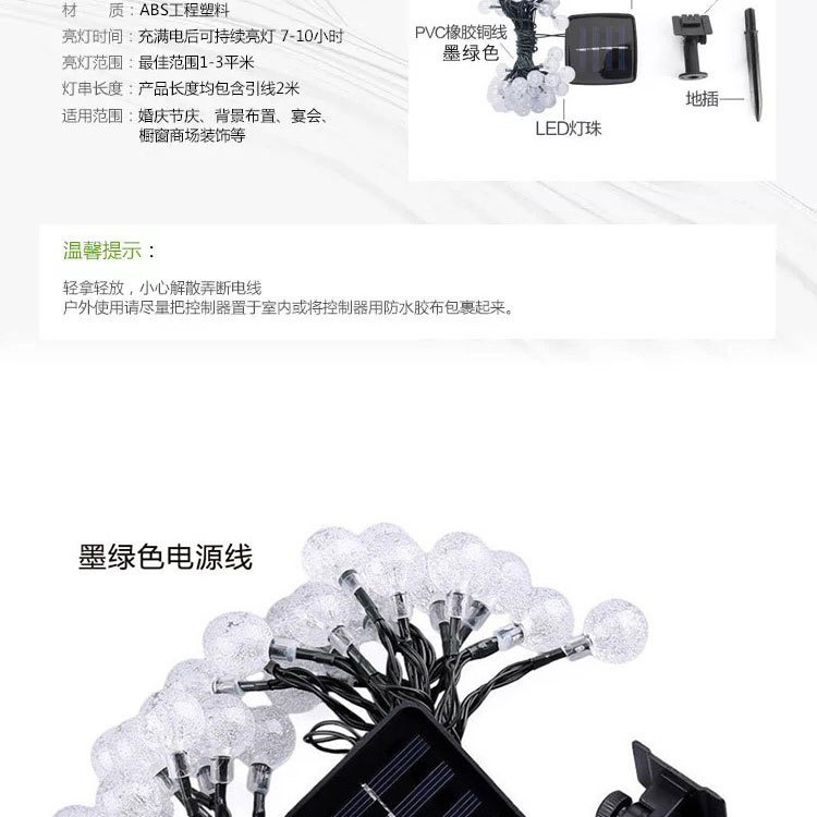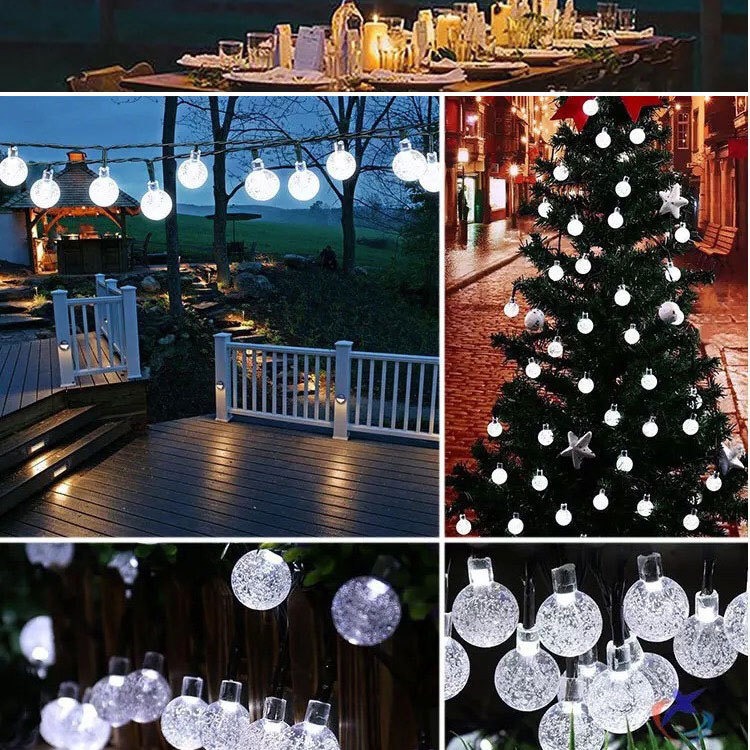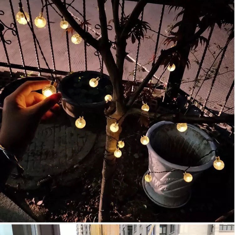 气泡球太阳能灯串户外氛围灯led串灯防水露营庭院装饰水晶球彩灯