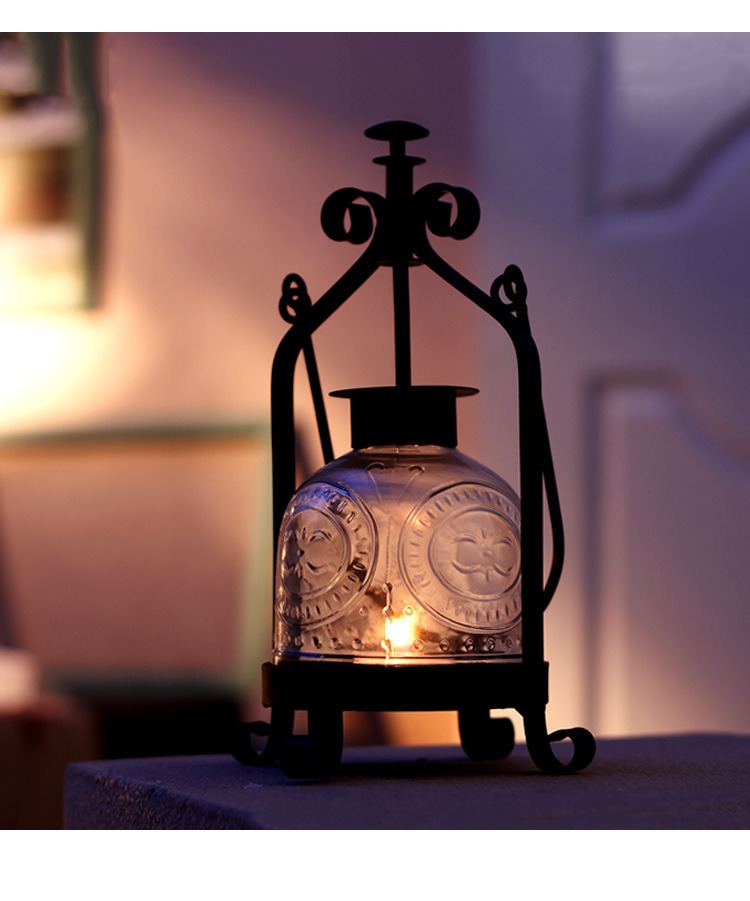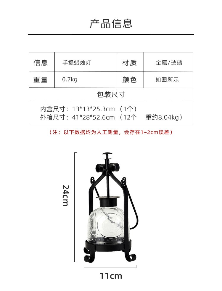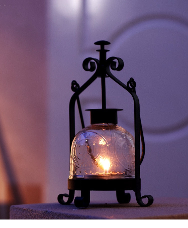 浪漫烛光晚餐道具玻璃烛台摆件批发手提蜡烛灯复古老式铁艺油
