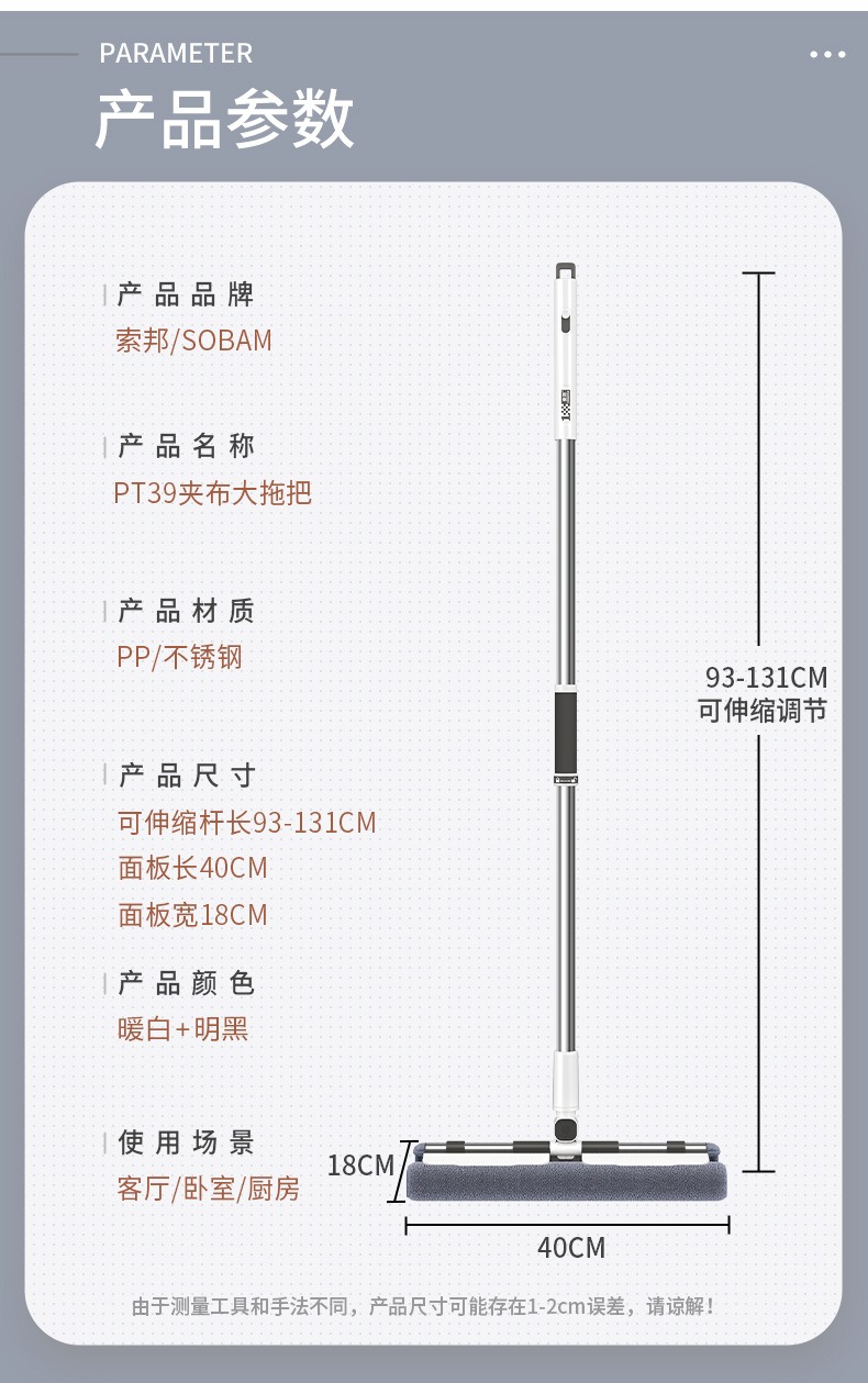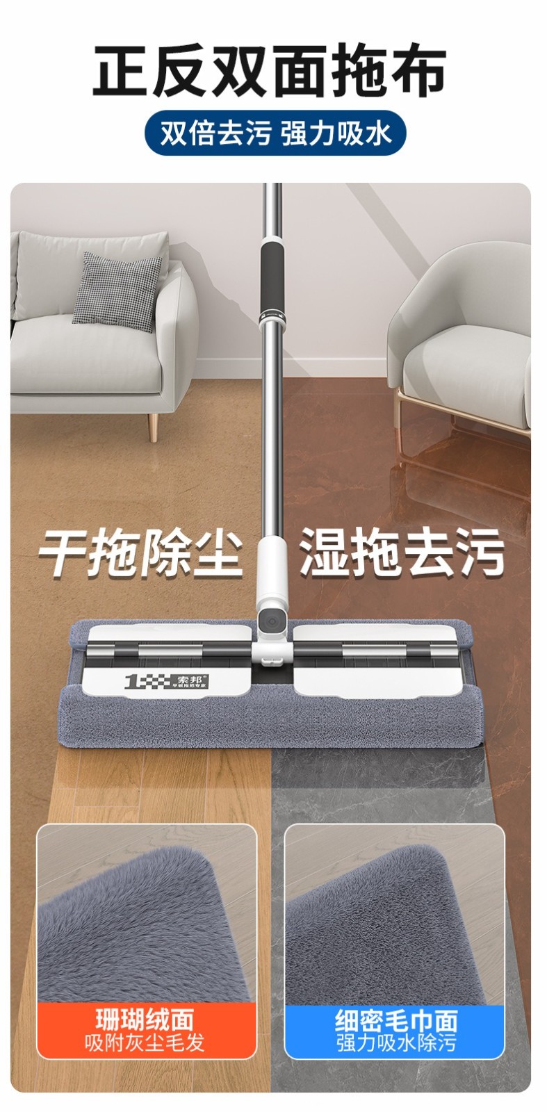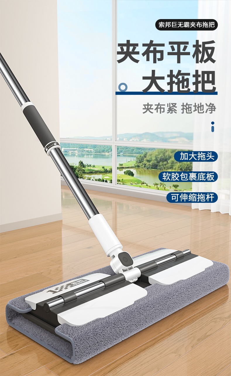 索邦/Sobam平板拖把家用一拖净新款木地板懒人拖地神器夹抹 布拖布