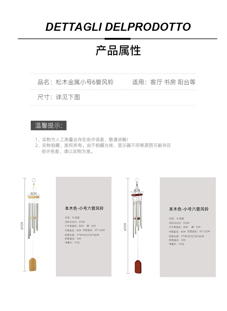 金属管风铃北欧田园铝管 阳台挂饰门饰礼品步步高升6管风铃