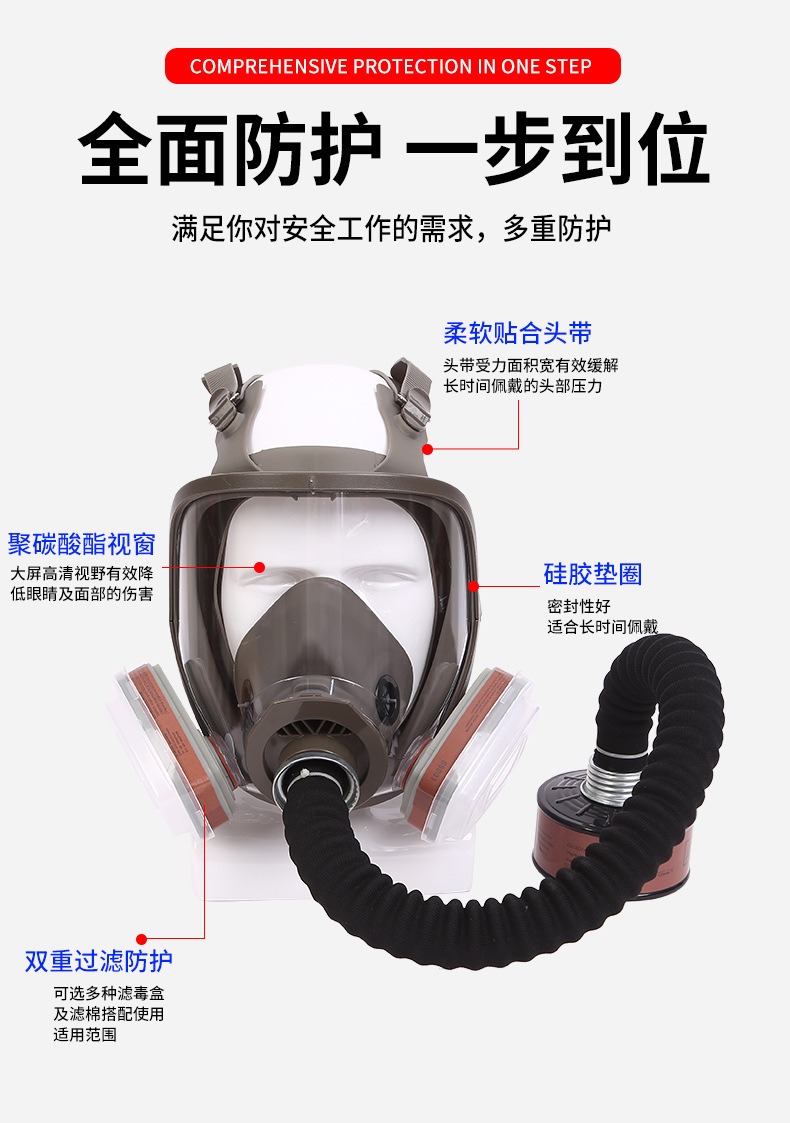 6800款防毒面具全面罩喷漆化工农药防粉尘可接滤毒罐防毒全面具