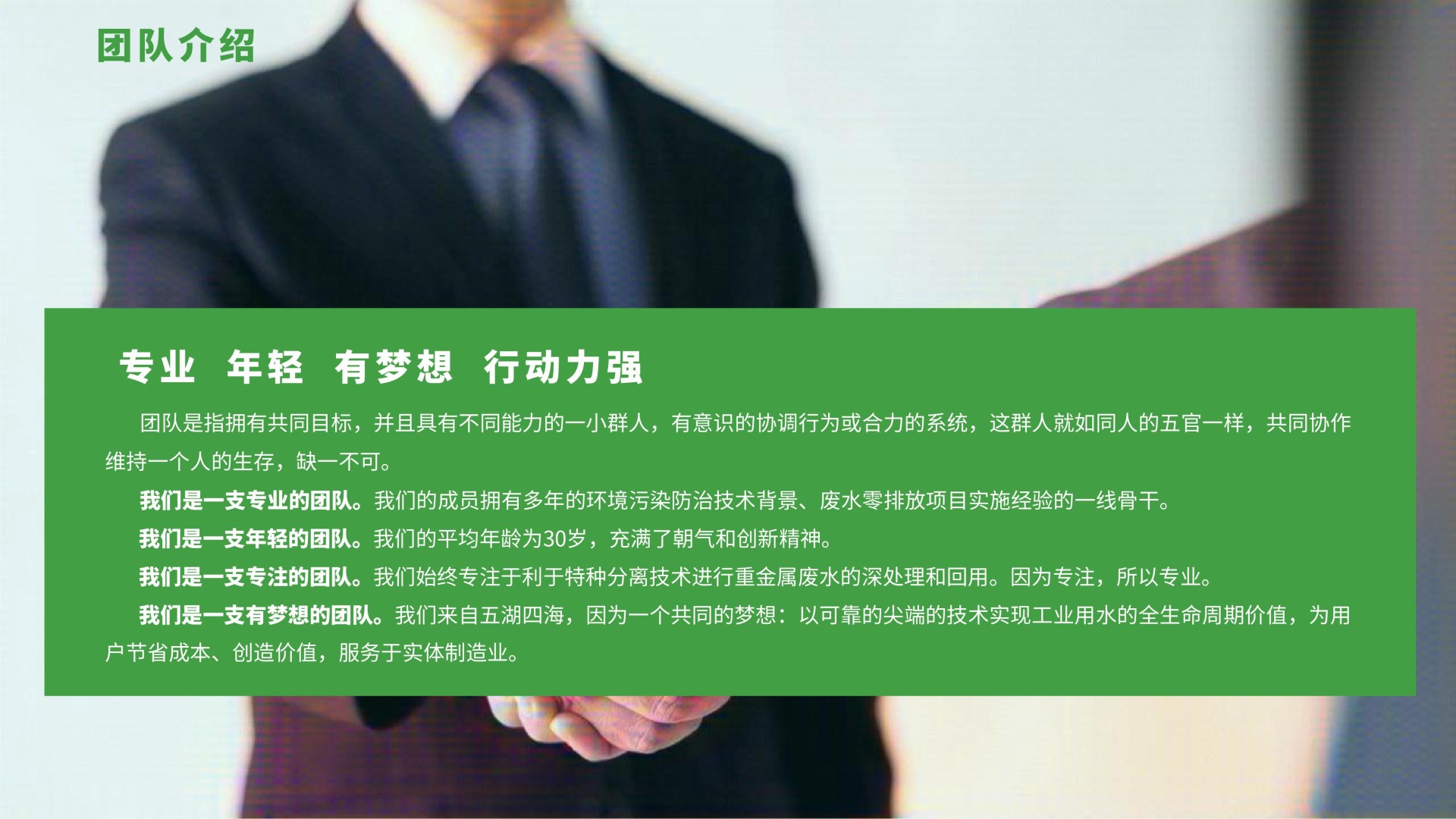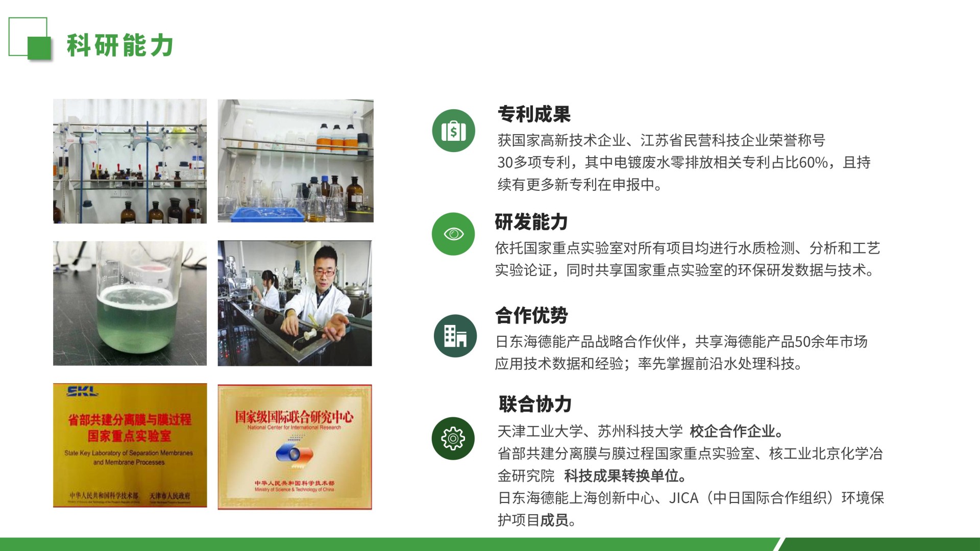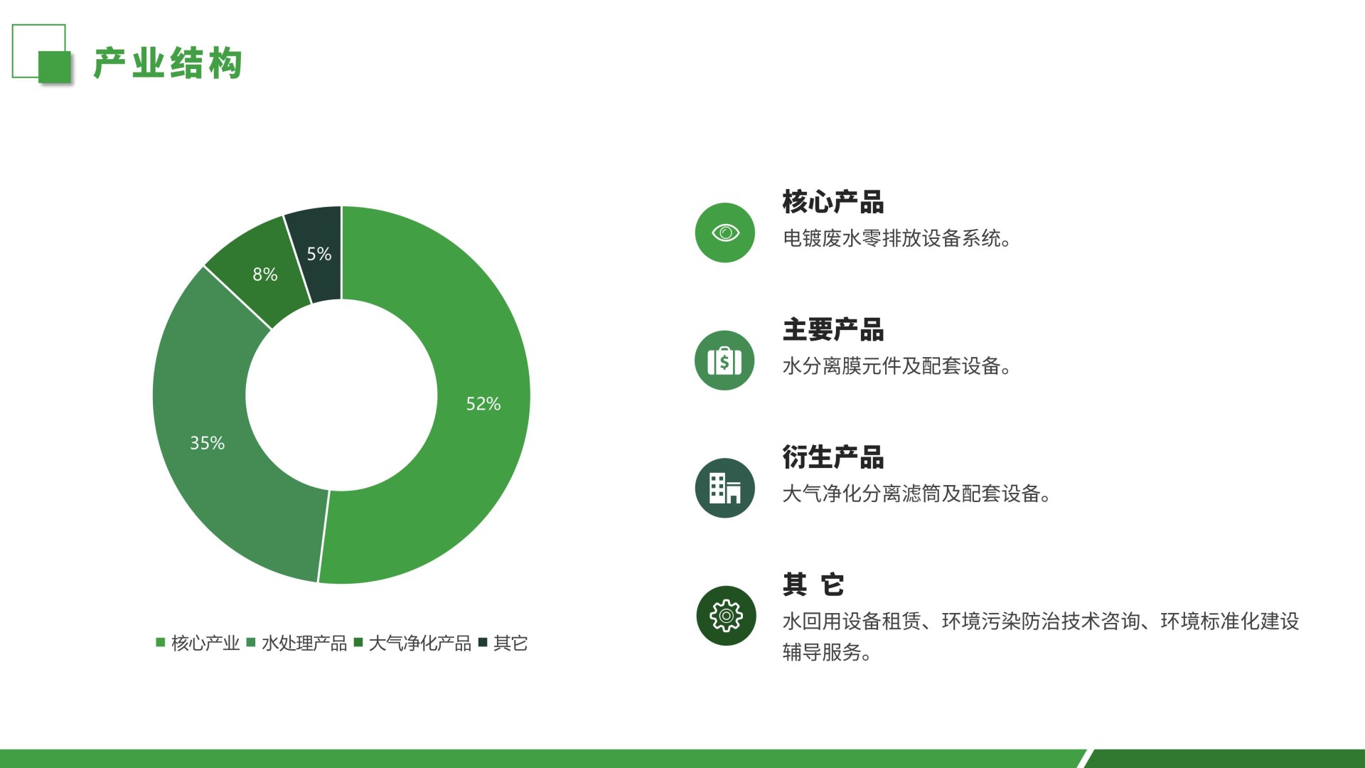利用“特种分离技术”为客户提供水资源回用(近零排)系统、分离膜元件、电镀设备、相关配套服务的科技型企业综合型服务商