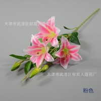 6头绢布百合单枝仿真花 客厅餐桌家具卖场装饰酒店大堂休息区摆放