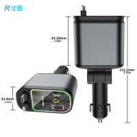 跨境C3车载手机充电器66W超级快充PD带星空顶投影灯四合一伸缩线B