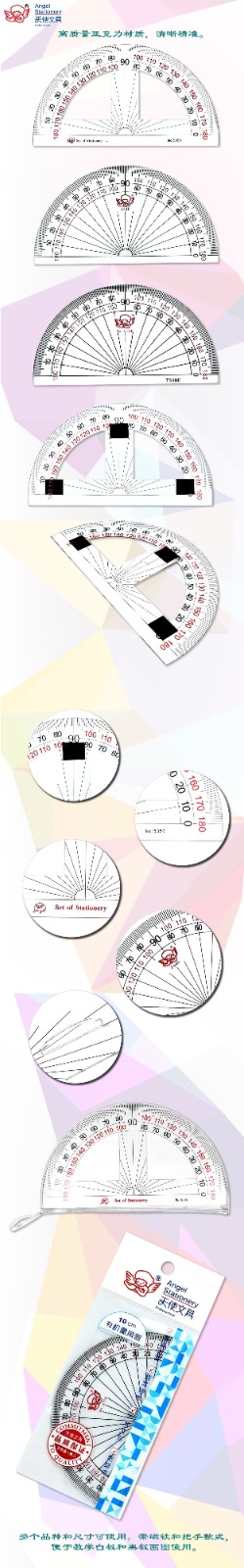 180度量角器天使牌亚克力高透明度10cm/12cm/50cm量角器