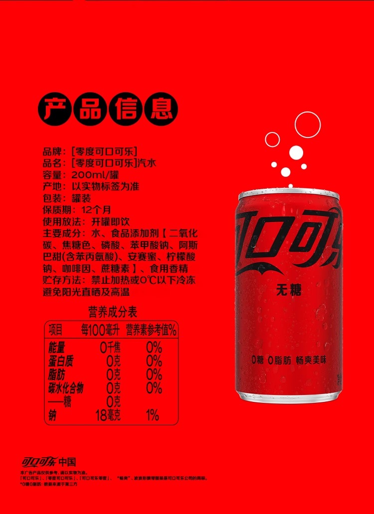 可口可乐碳酸饮料无糖mini迷你罐200ml*12罐*2箱整箱汽水