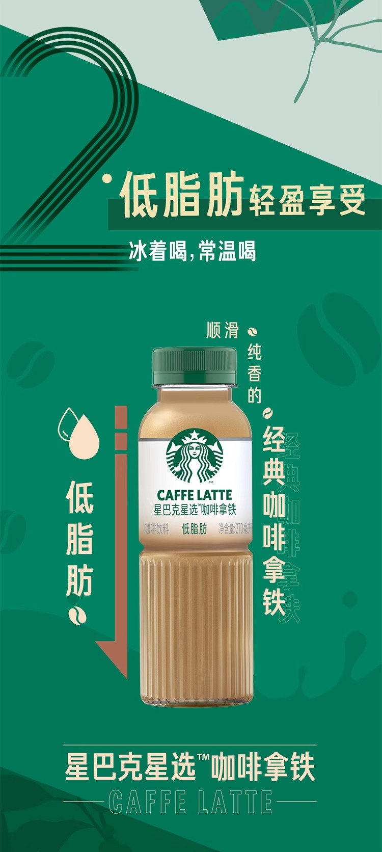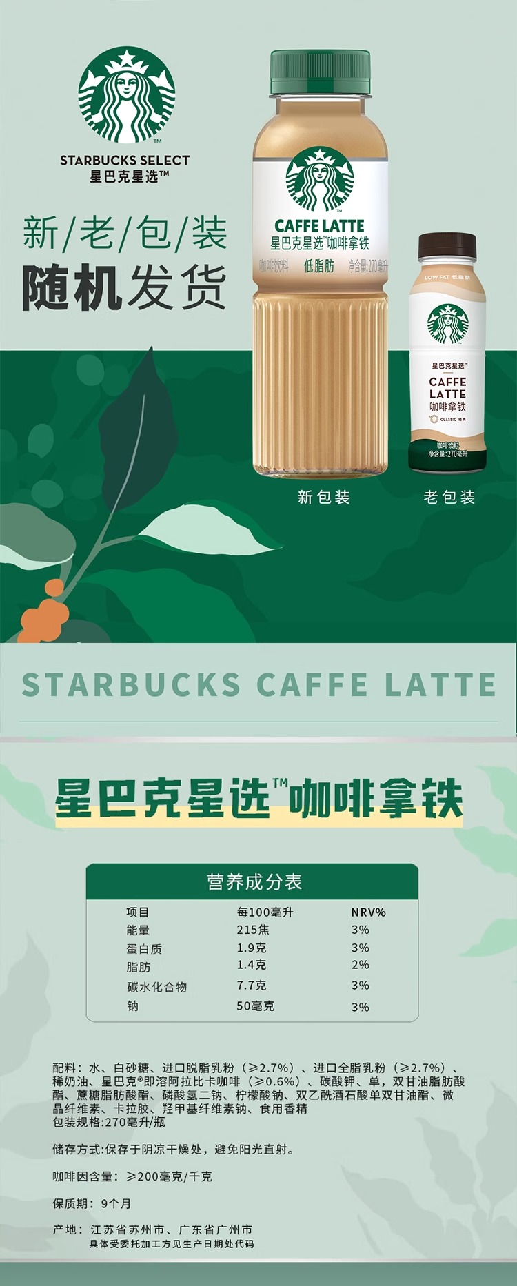 Starbucks/星巴克星选拿铁咖啡270ml*3瓶低脂瓶装即饮咖啡饮料