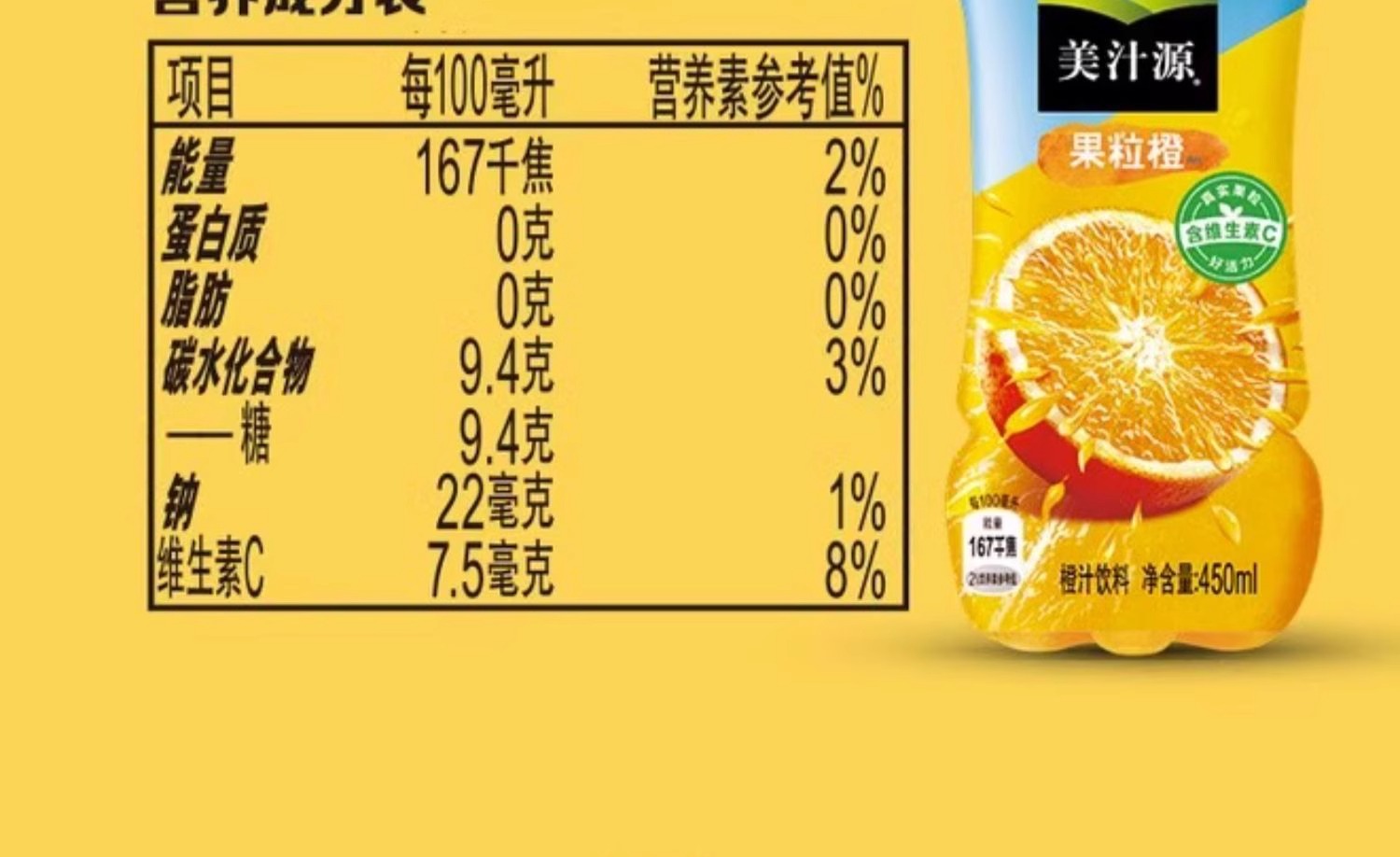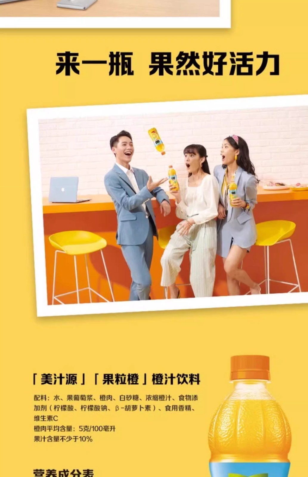 美汁源果粒橙果汁饮料大包装橙汁1.25L*12瓶