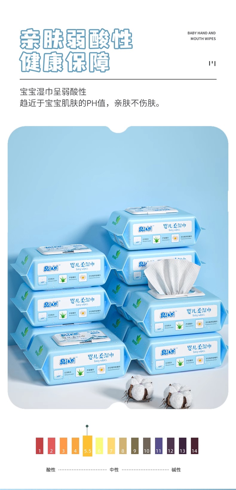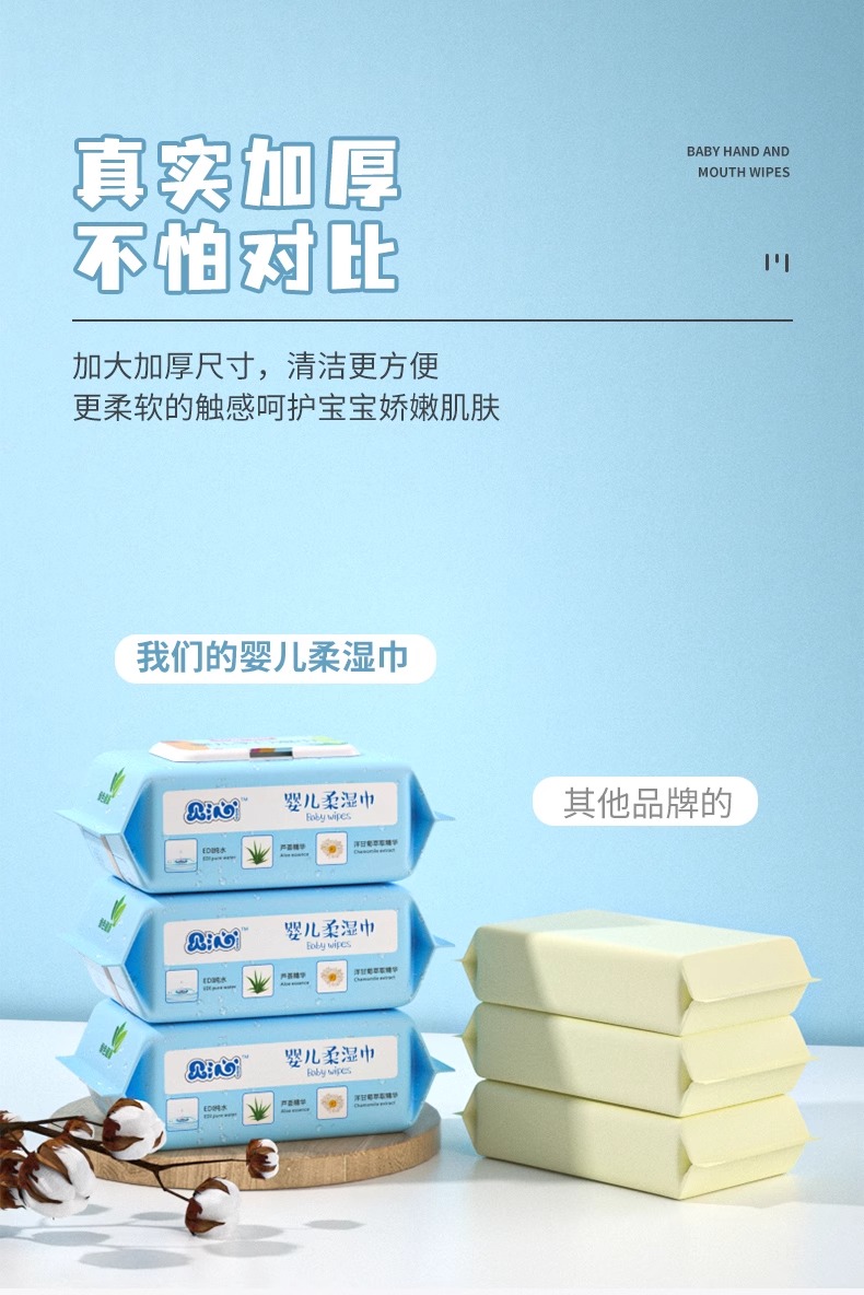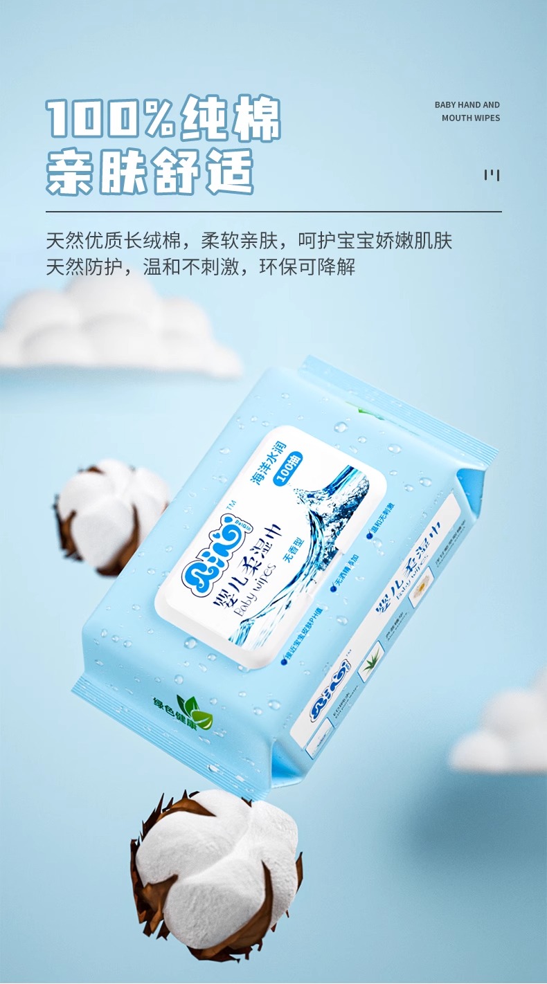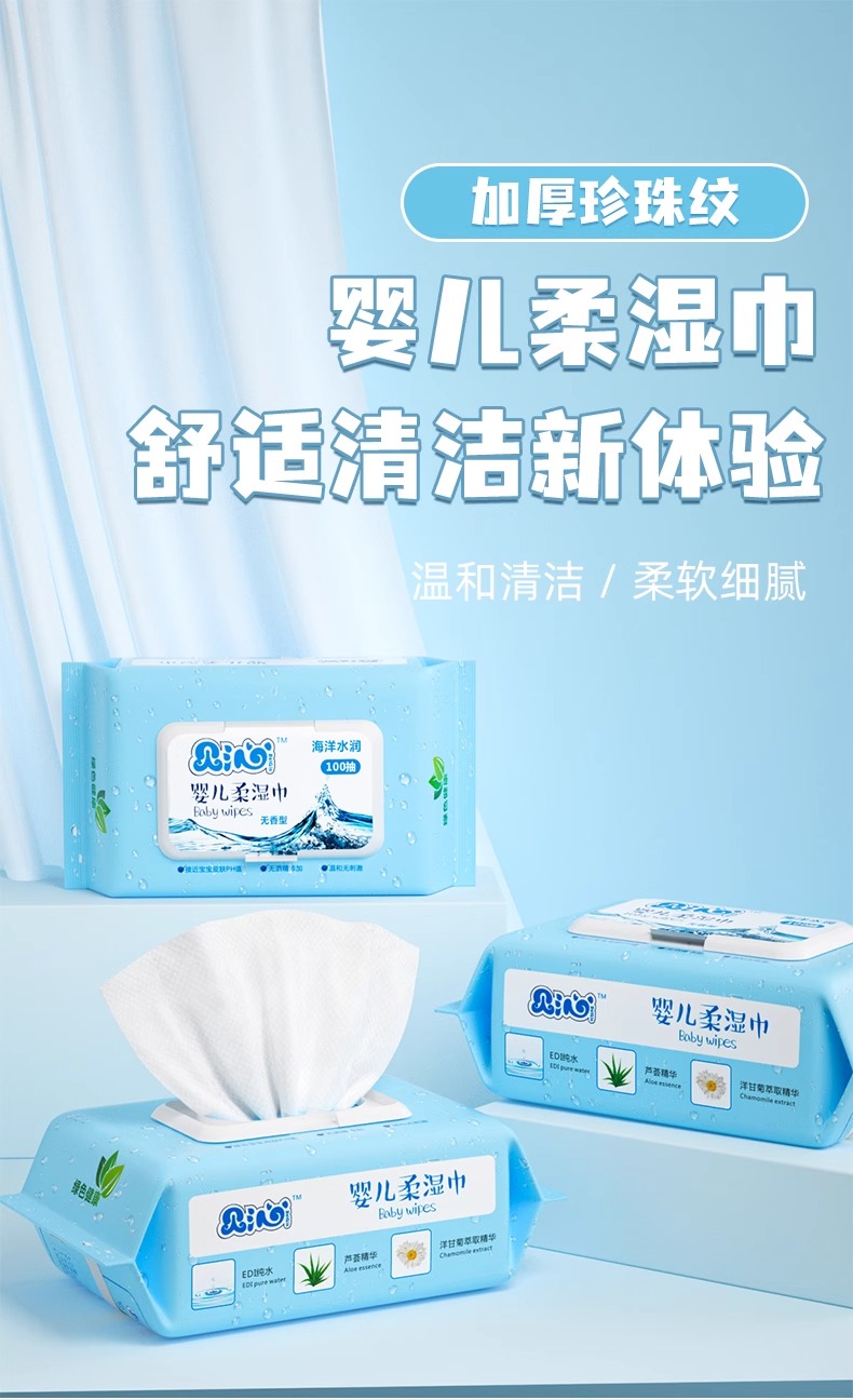 贝沁婴儿柔湿巾 100抽*5包带盖 加厚 新生儿童宝宝湿纸巾母婴用品