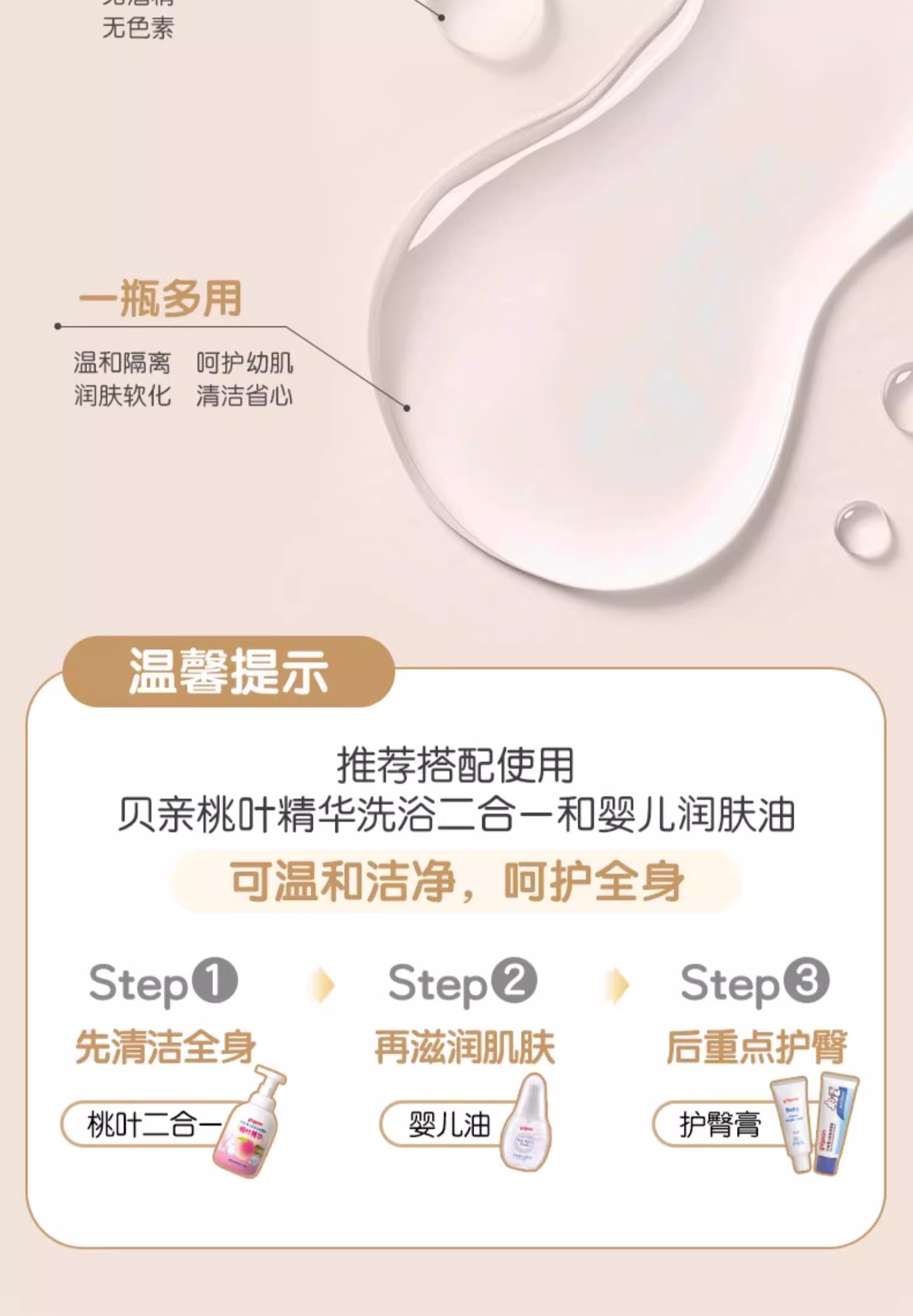 宝宝桃叶精华新生婴儿洗浴护肤润肤套装护臀膏贝亲官方旗舰店