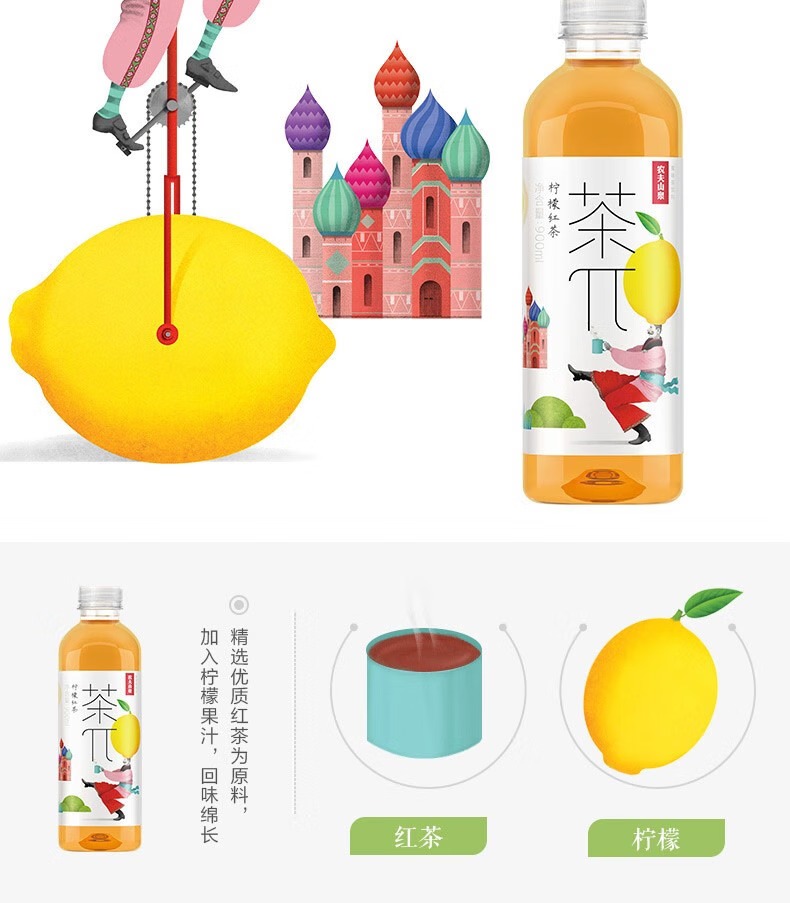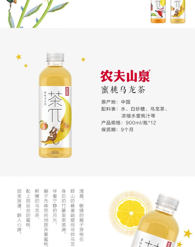 农夫山泉 茶π(茶派)茶饮料蜜桃乌龙柠檬红茶果味饮料