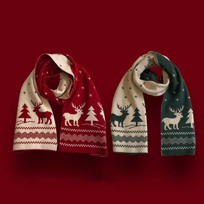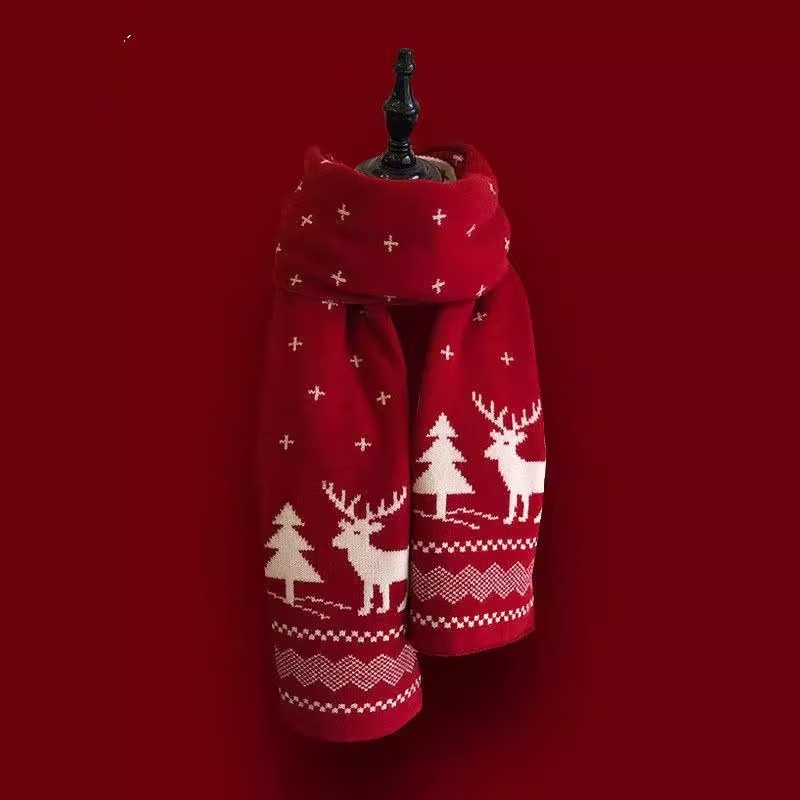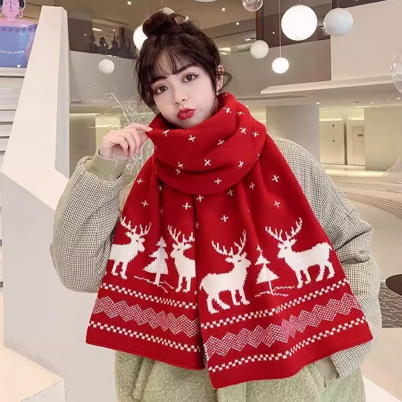 圣诞麋鹿礼物红色小鹿围巾女百搭秋冬新款保暖学生可爱围脖ins潮