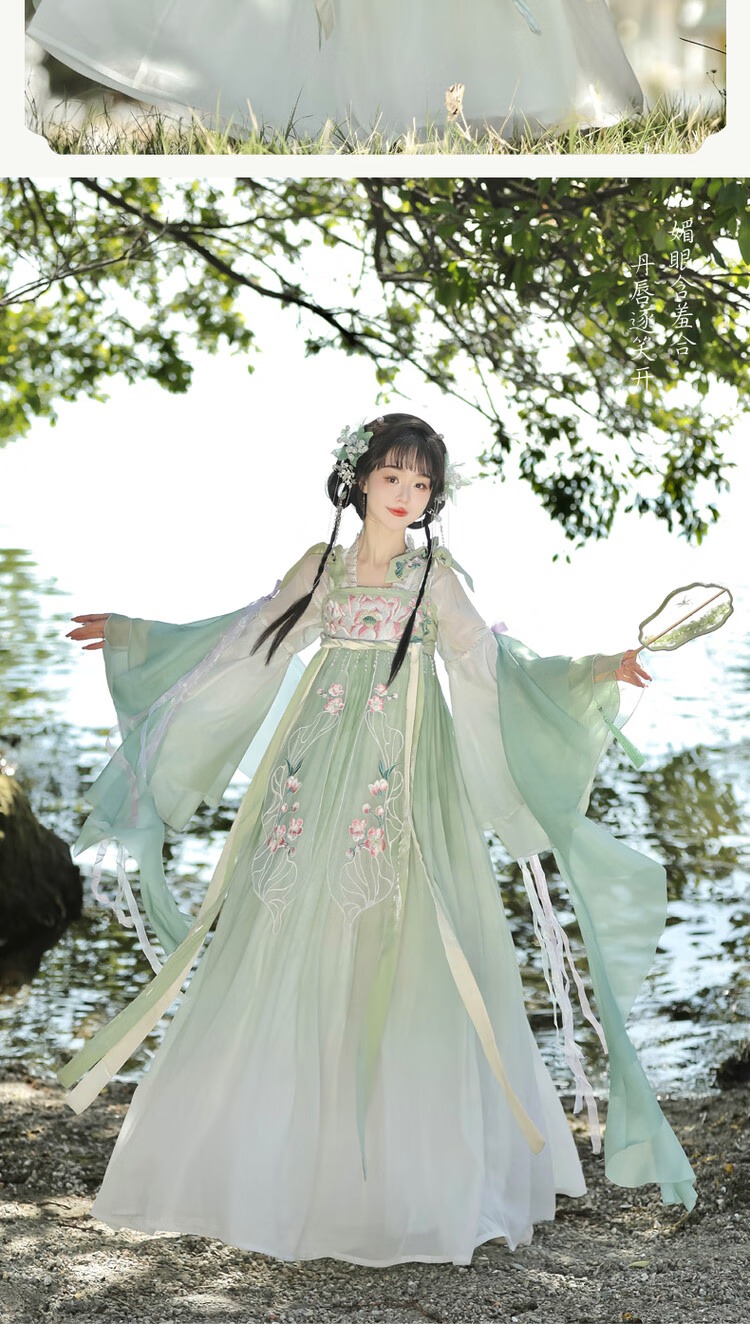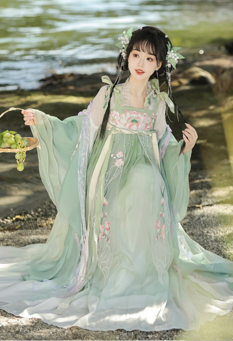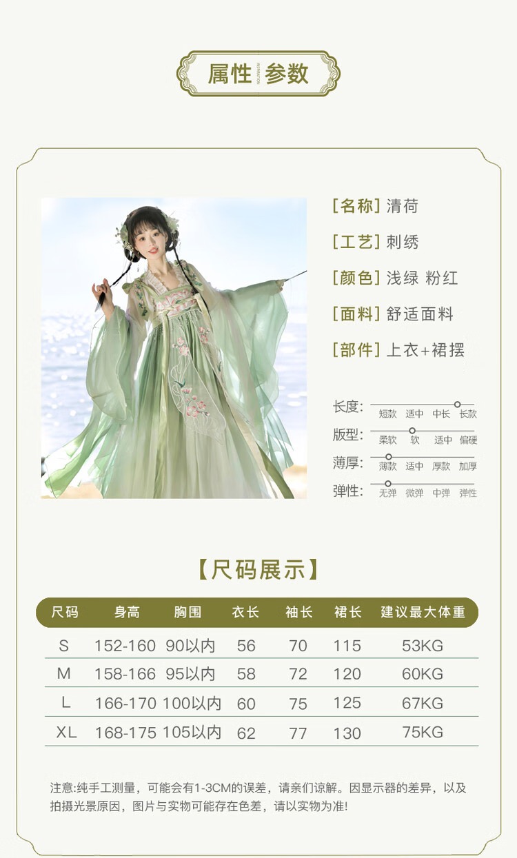 【清荷绿】上衣+裙子+披帛+肩花 S