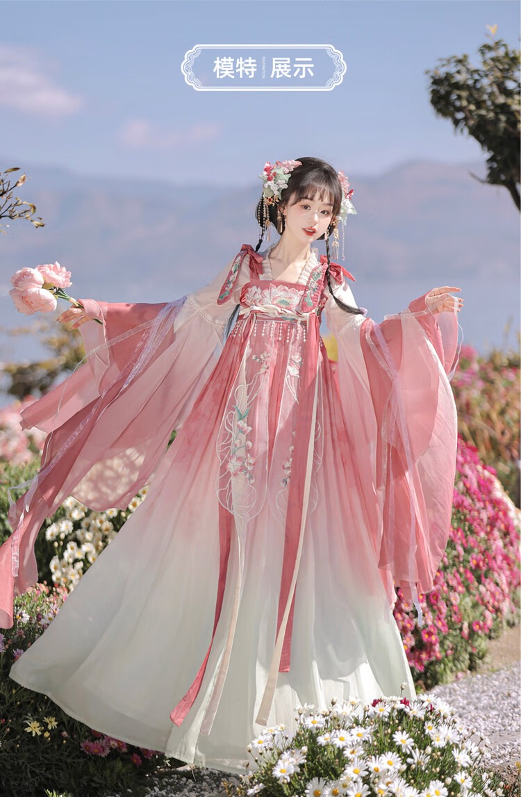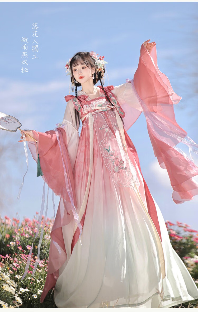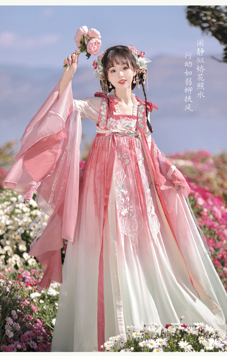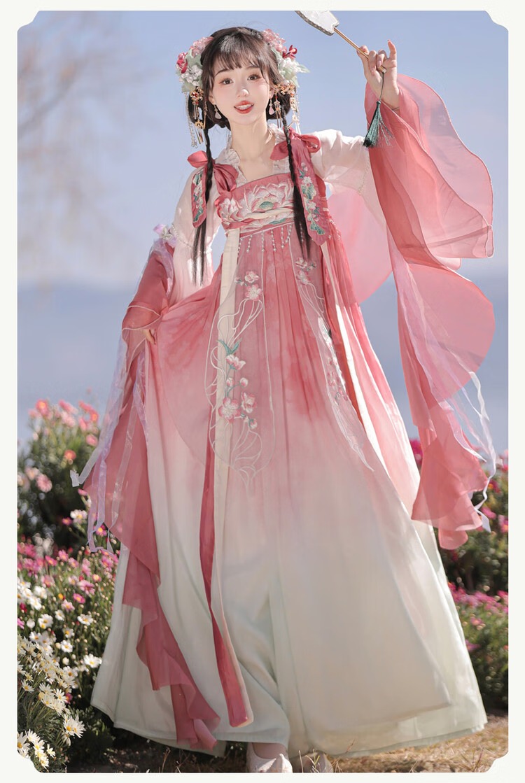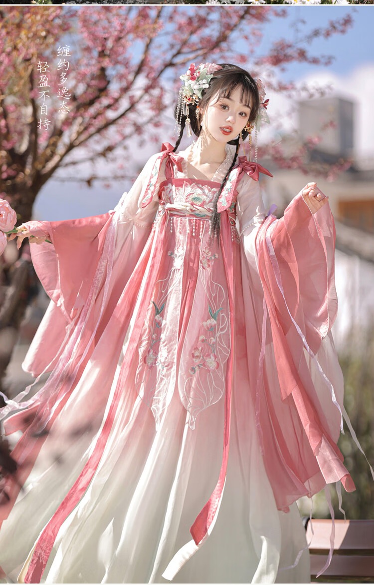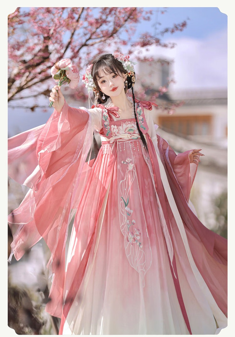 【清荷粉】上衣+裙子+披帛+肩花 S