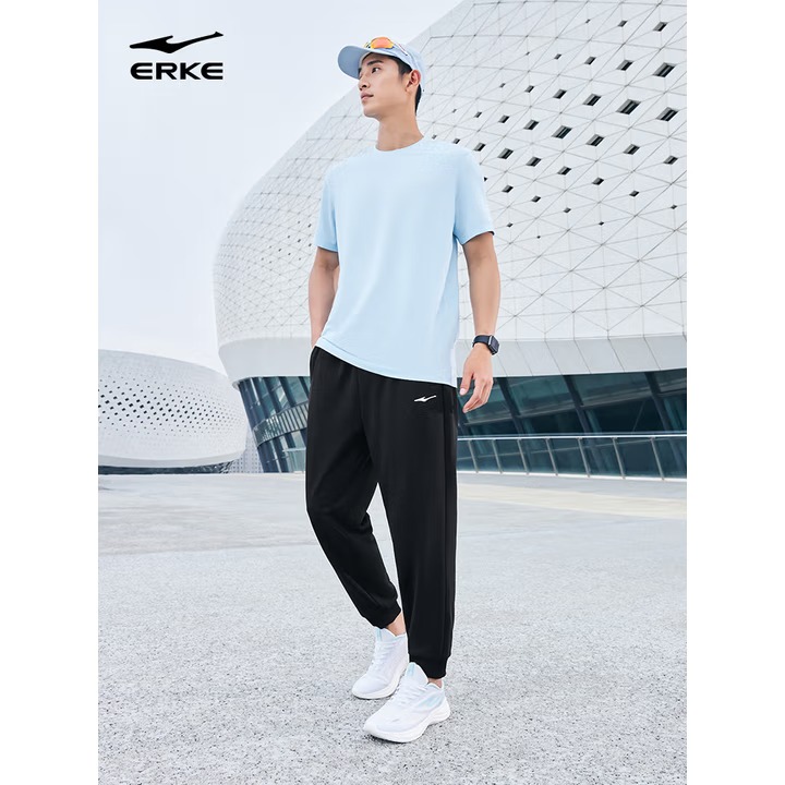 鸿星尔克运动裤男夏季针织男裤束脚舒适透气宽松卫裤九分裤子男休闲裤