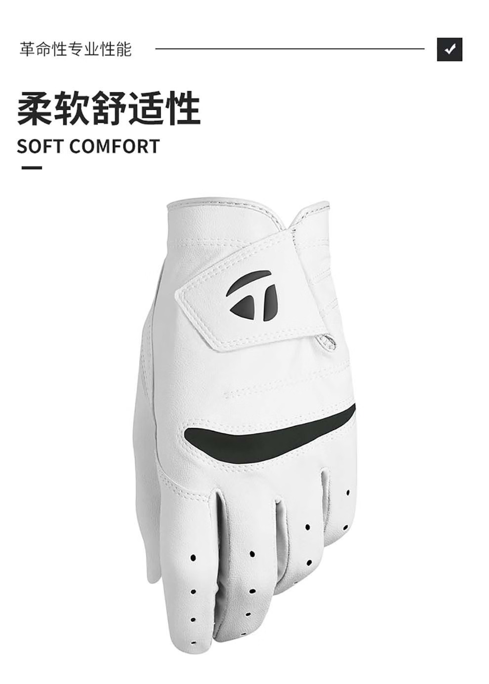 Taylormade泰勒梅高尔夫手套25新款男士运动透气舒适高弹防滑golf左手手套 N78480 左手 白色 25码