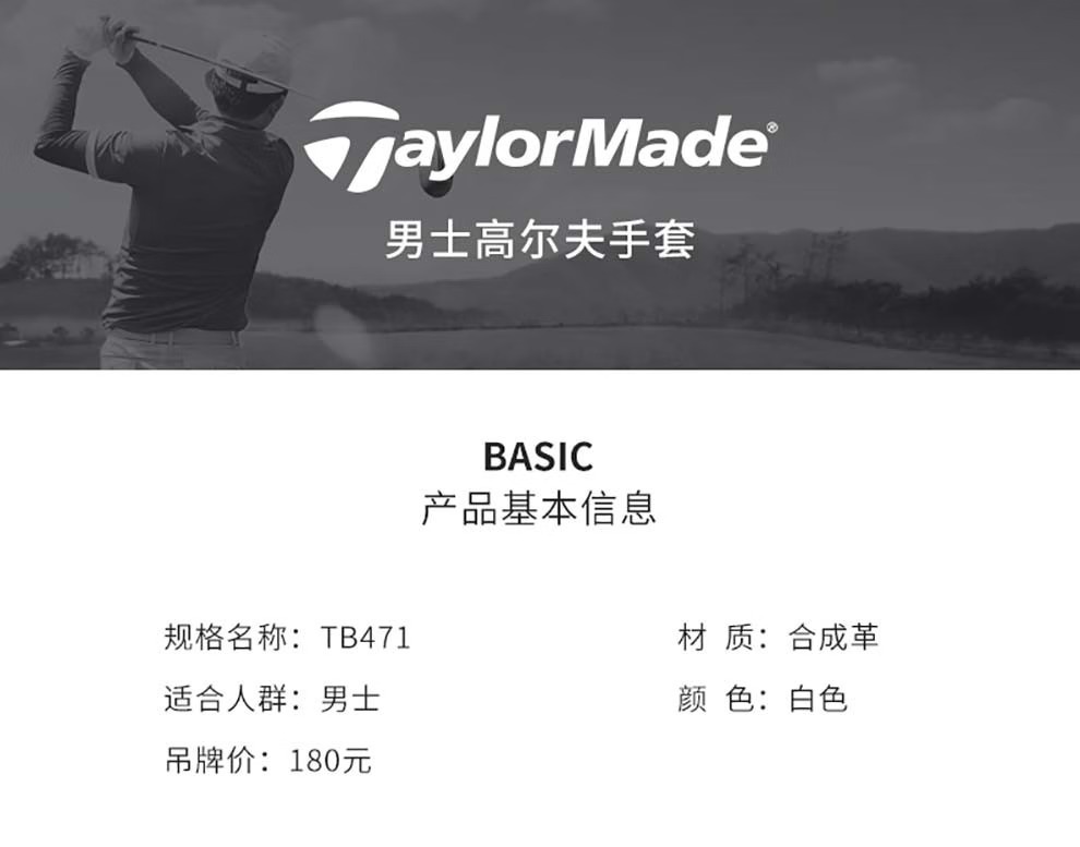 Taylormade泰勒梅高尔夫手套25新款男士运动透气舒适高弹防滑golf左手手套 N7848