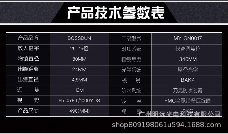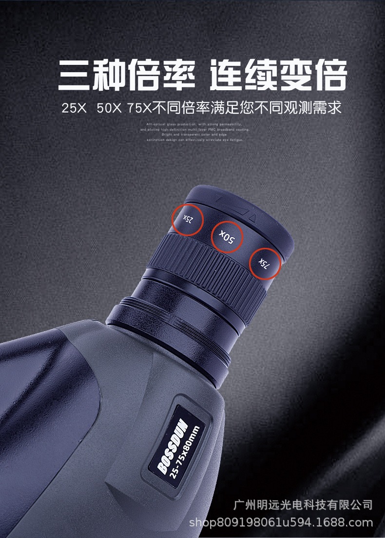 BOSSDUN单筒望远镜高倍高清25-75倍观鸟观星观景拍照望远镜