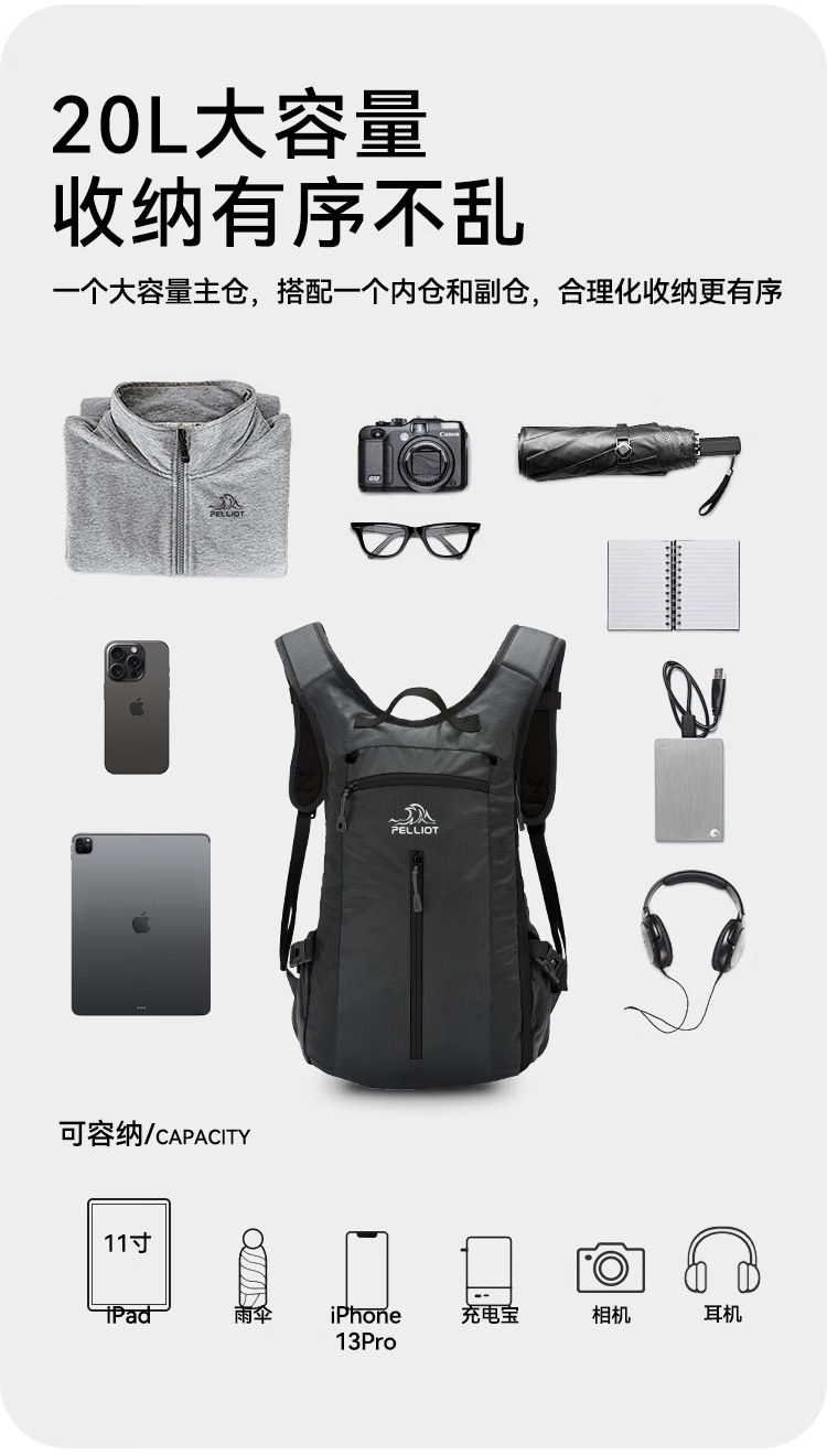 伯希和(Pelliot)户外登山包徒步背包男女骑行越野跑双肩运动包防水