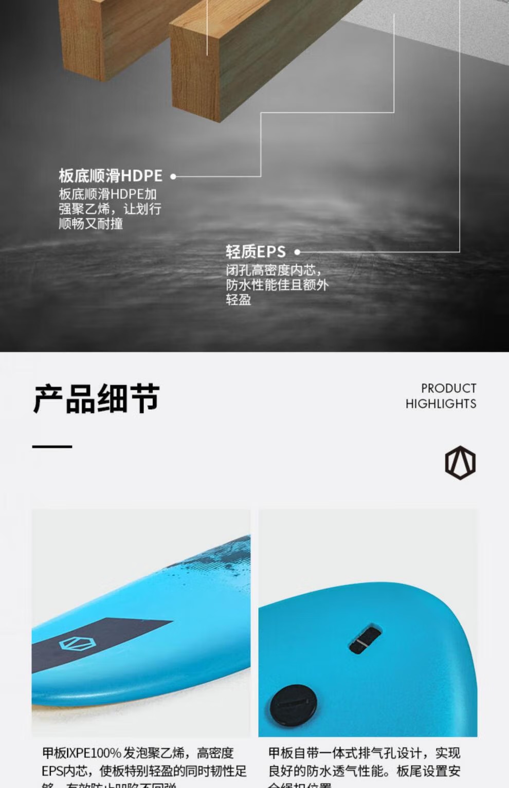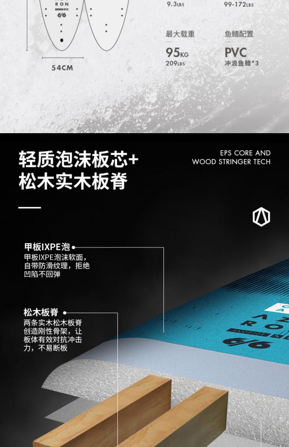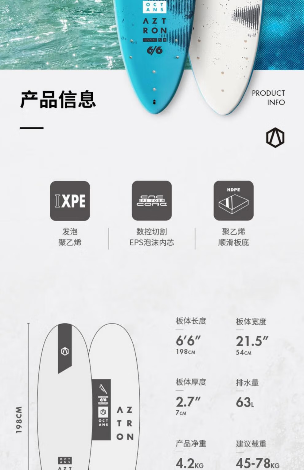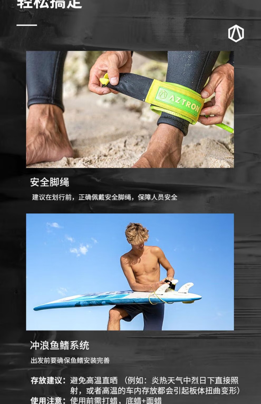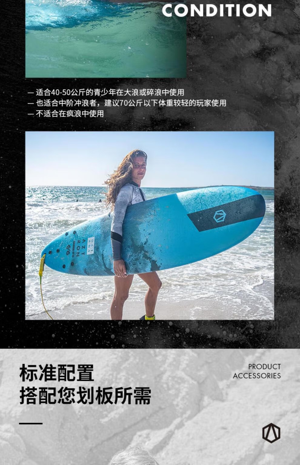 AZTRON南极号硬板冲浪板成人站立式滑水板 6尺6寸南极号 198cm标配