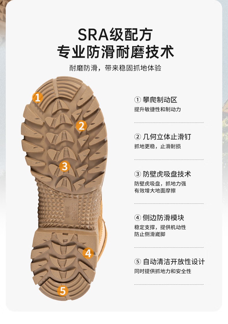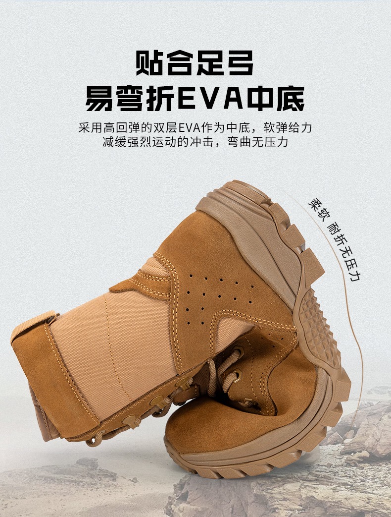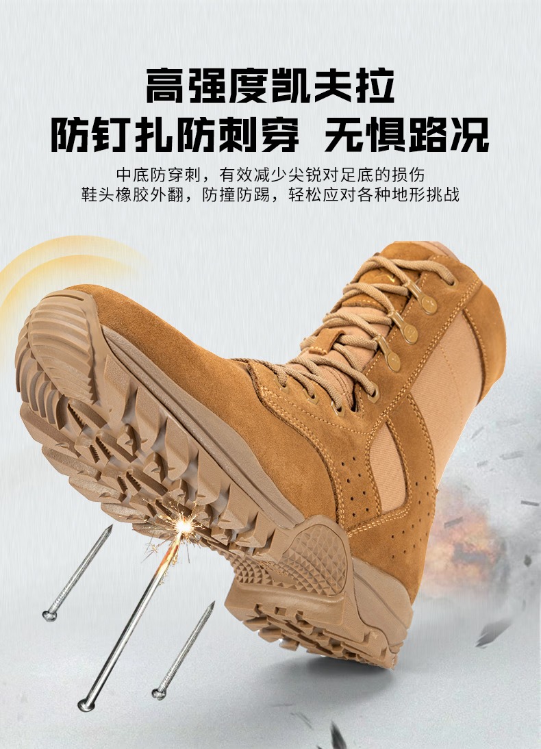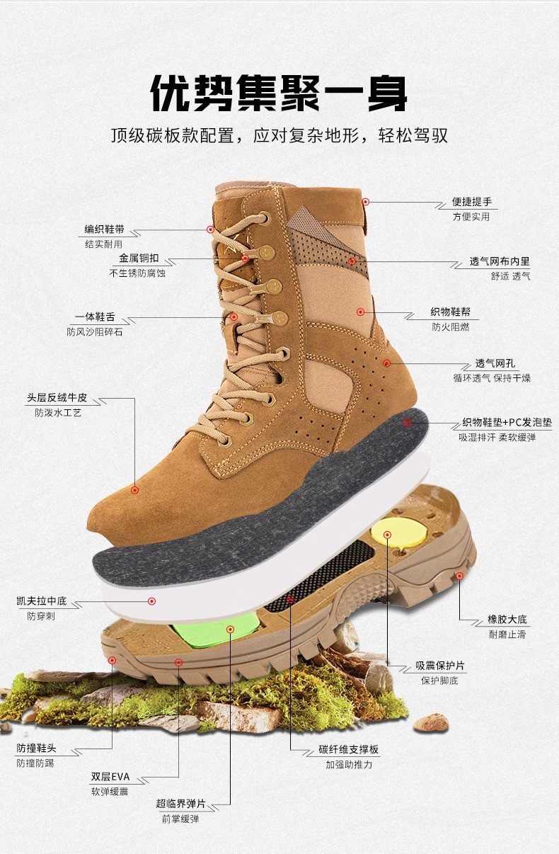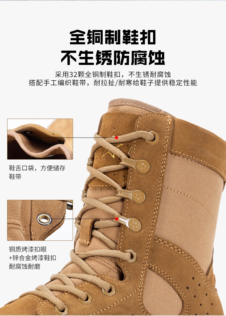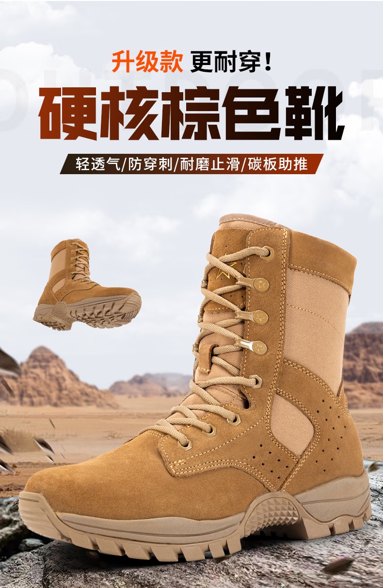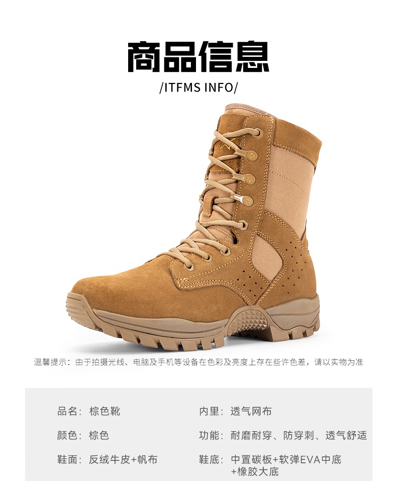 际华户训新式棕色作战靴男作战鞋碳板超轻训练靴高帮侧拉链耐磨沙漠登山鞋 新式棕色作战靴【铜扣碳板款】