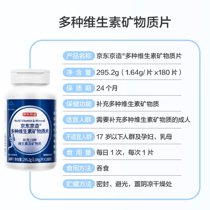 京东京造 男士多种复合维生素矿物质180片 锌镁维生素b族维生素c维生素e