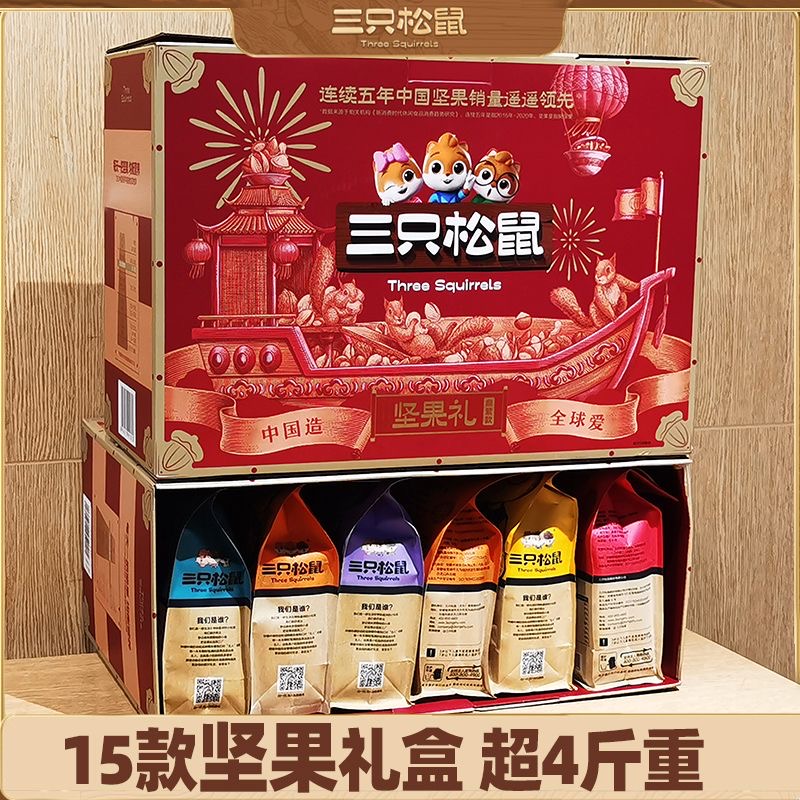 三只松鼠坚果大礼包混合纯干果920g/7袋零食整箱开心果松子礼盒装