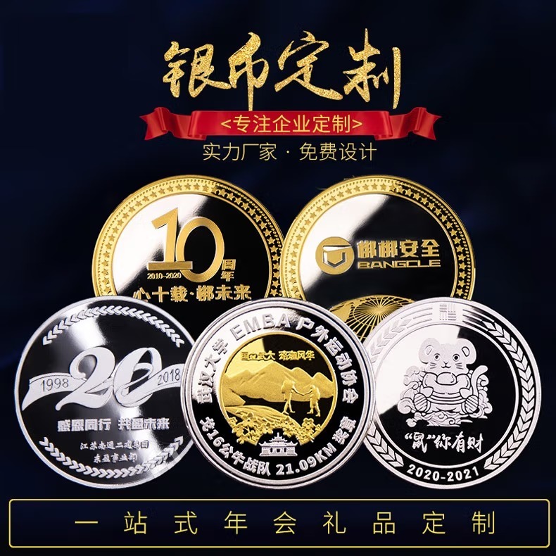 金雅康银币纪念币定制logo足银999公司年会周年庆员工礼品纪念品奖牌DIY (零售)10g足银+双面定制+平面