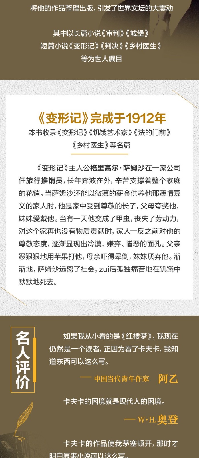 【变形记】:卡夫卡短篇小说选 现代派文学鼻祖代表作洞悉现代人困境