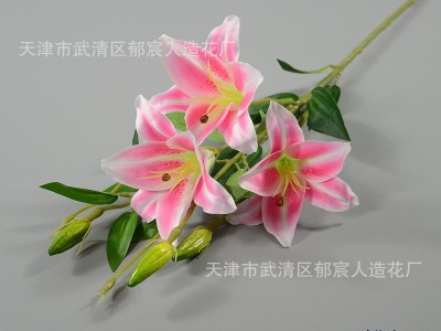 6头绢布百合单枝仿真花 客厅餐桌家具卖场装饰酒店大堂休息区摆放